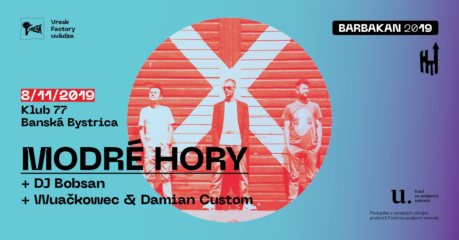 - 08. november: Modré Hory + Wuačkowec & Damian Custom + DJ Bobsan – Záhrada CNK, Banská Bystrica