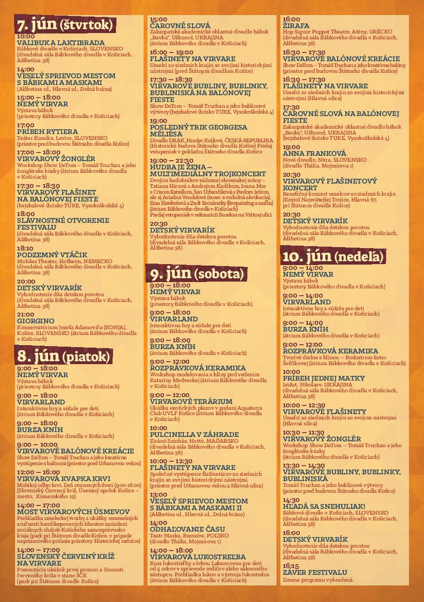 Predstavenia jednotlivých slovenských i zahraničných divadiel je už tradične doplnený množstvom sprievodných podujatí, aby ste si mali z čoho vyberať. Budú po celom meste, stačí si nájsť to svoje, zobrať deti a prísť sa pozrieť.