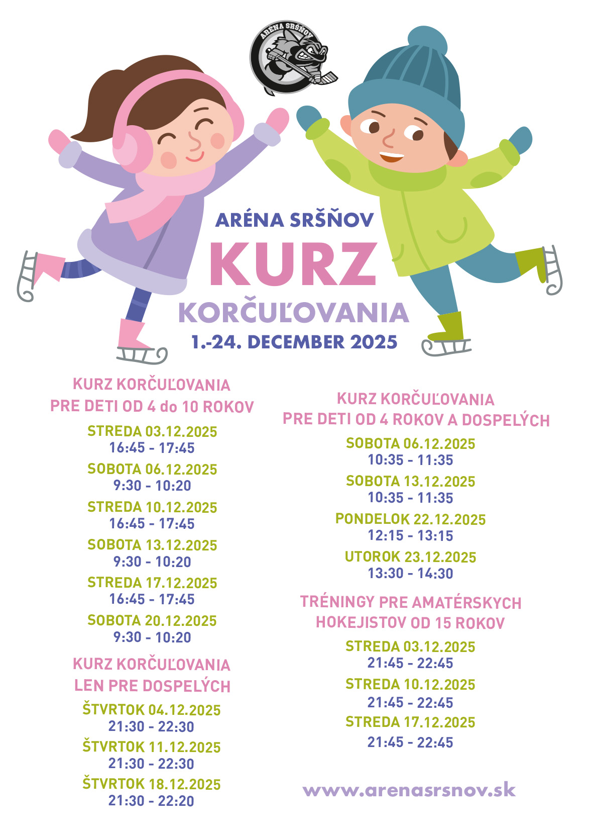 Presné termíny a časy konania kurzov nájdete na www.arenasrsnov.sk.