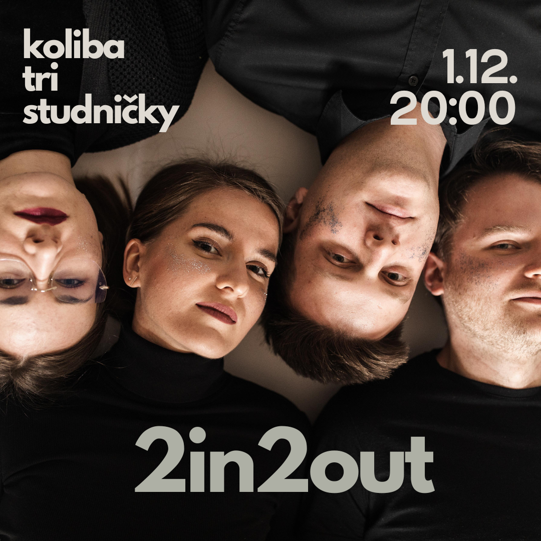 Tohtoročná zimná sezóna sa otvára už 1.12. výborným koncertom. Na začiatku decembra k nám zavíta pražské zoskupenie 2in2out. Jadrom kapely je gitarista Jan Lacina a saxofonistka Nela Dusová, ktorí pre 2in2out vytvárajú autorský repertoár, inšpirovaný tak tradičnou hudbou, ako súčasnou experimentálnou tvorbou.
