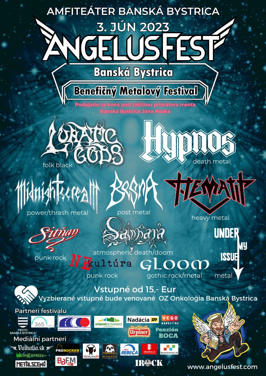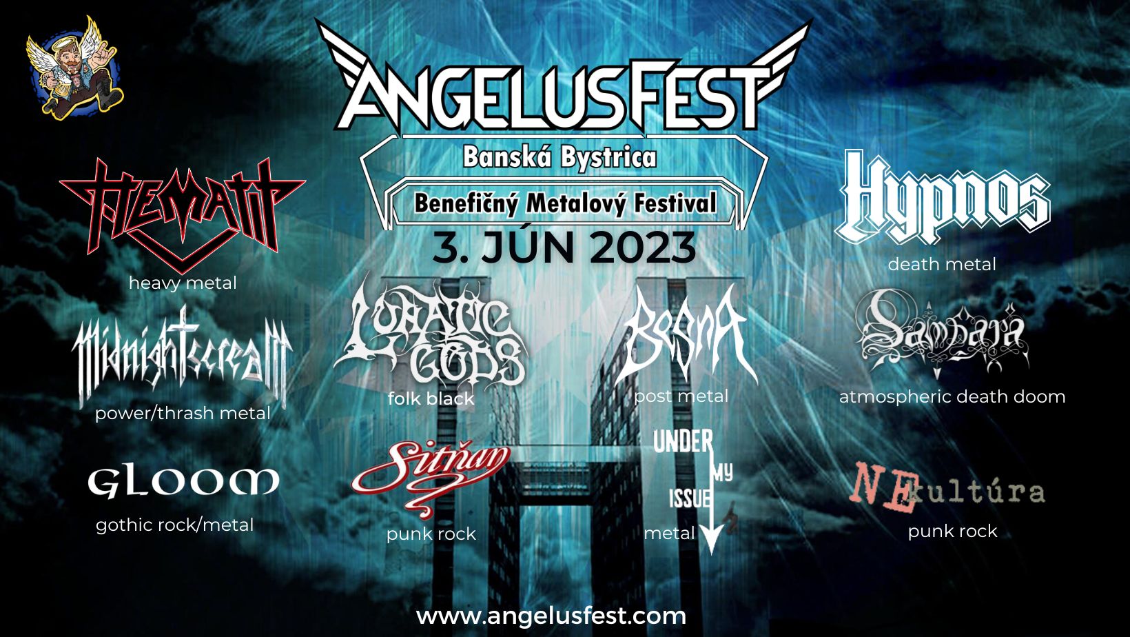 Na Angelus feste sa predstaví 10 kapiel, vrátane legendárnych HYPNOS, populárnych LUNATIC GODS v zostave aj s Marthusom Škaroubkom či MIDNIGHT SCREAM, ktorí predvedú exkluzívny set v zostave z Wackenu. Do pestrej zostavy pribudli aj zaujímavé punk-rockové kapely SITŇAN a NEKULTURA resp. 2 domáce bansko-bystrické skupiny – legendárni HEMATIT a nová nádej UNDER MY ISSUE.