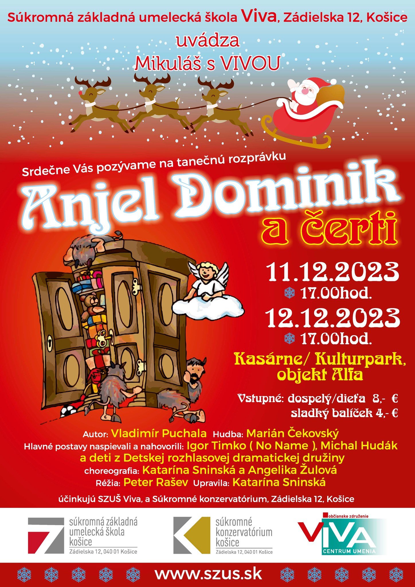 Súkromná základná umelecká škola, Zádielska 12 v Košiciach /SZUŠ VIVA/ Vás pozýva na mikulášske tanečné predstavenie pod názvom ANJEL DOMINIK A ČERTI.