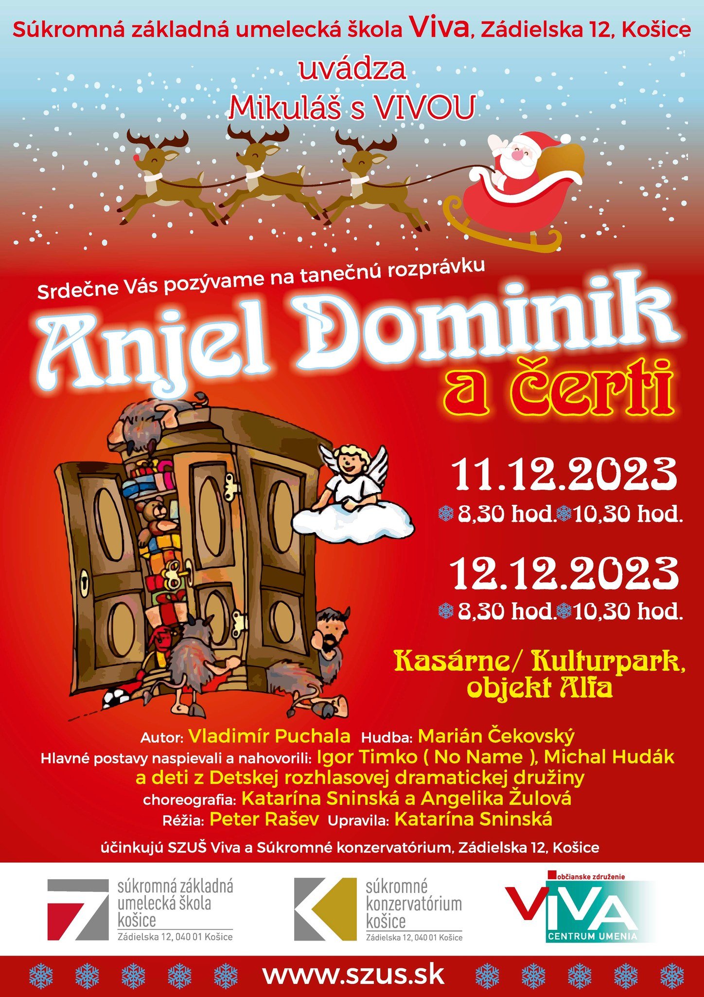 Súkromná základná umelecká škola, Zádielska 12 v Košiciach /SZUŠ VIVA/ Vás pozýva na mikulášske tanečné predstavenie pod názvom ANJEL DOMINIK A ČERTI.