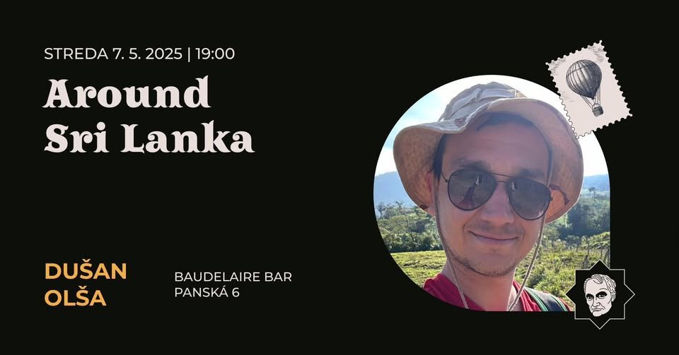 Príďte si vychutnať ďalší večer plný dobrodružných príbehov v štýlovom Baudelaire Bare! Tentoraz sa vydáme na smaragdový ostrov v Indickom oceáne – do magickej Sri Lanky, kde sa bujné džungle striedajú s nekonečnými plážami, starobylé chrámy s koloniálnou architektúrou a čajové plantáže s posvätnými horami. Objavíte krajinu, kde sa sloni prechádzajú po cestách, miestni sa usmievajú pri každom stretnutí a všade cítiť vôňu korenín. Nechajte sa uniesť príbehmi o tajomných budhistických rituáloch, nezabudnuteľných stretnutiach s domácimi a dobrodružstvách na miestach, kde sa zastavil čas.