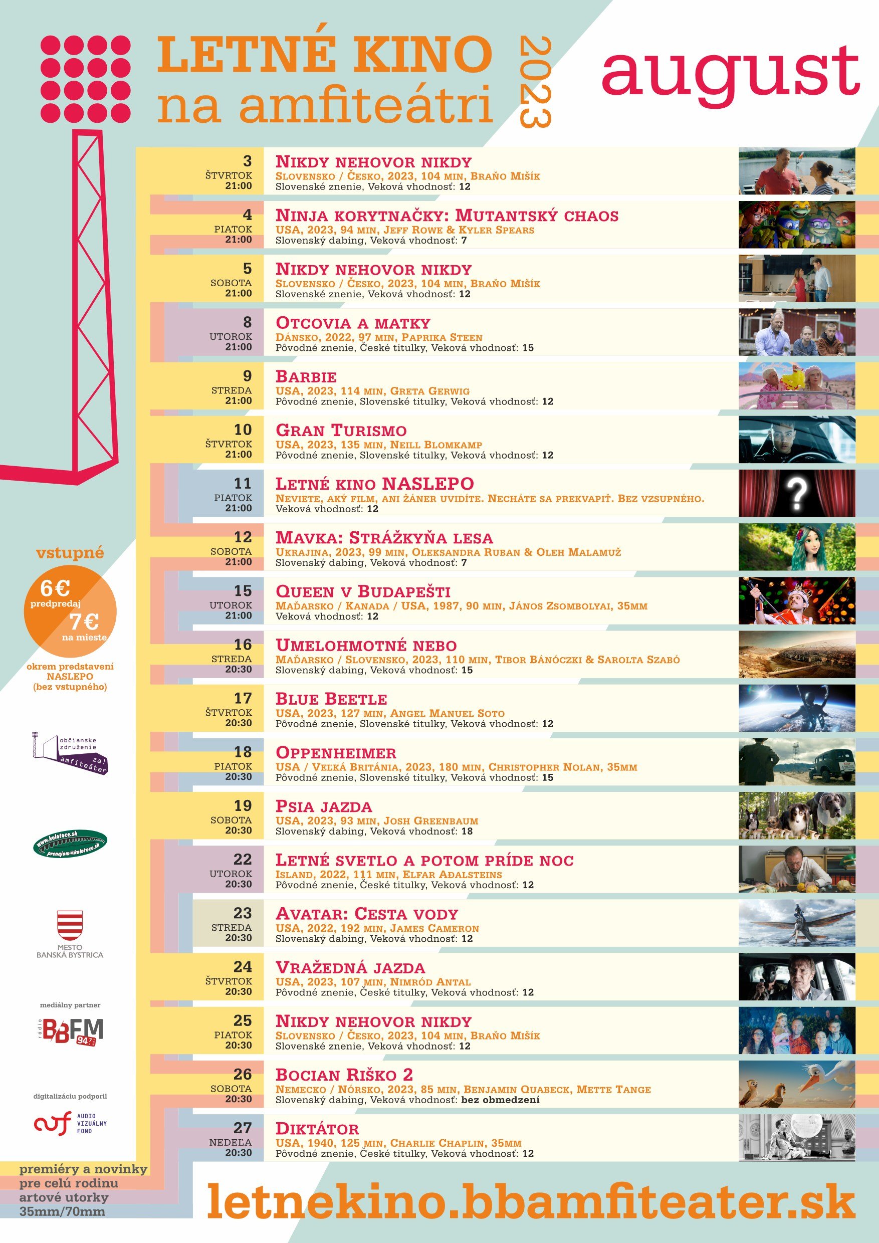 OZ za! amfiteáter pozýva aj v auguste do Letného kina na Amfiteátri Paľa Bielika v Banskej Bystrici. Aj v druhej polovici leta si budete môcť vychutnať rozmanitú ponuku filmov na obrovskom plátne pod Urpínom a hviezdami.