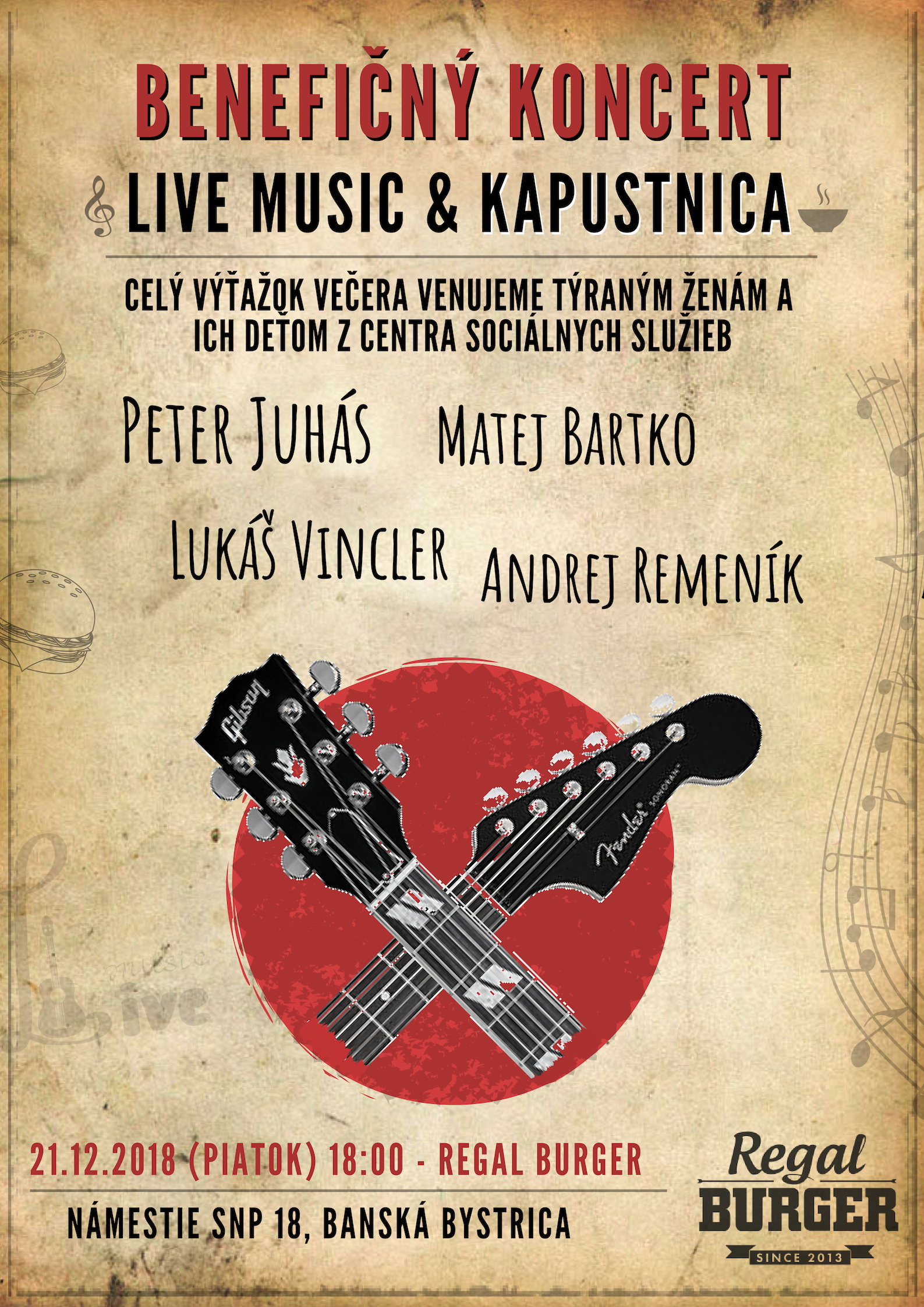 Preto sme sa aj my v Regali, namotivovaní krásnymi dobročinnými skutkami okolo, rozhodli prispieť svojou troškou a zorganizovali sme benefičný koncert, ktorého celý výťažok pošleme na pomoc ženám a ich deťom, ktoré si toho v živote veľa vytrpeli a potrebujú správne nasmerovanie aj materiálnu pomoc na nový začiatok.