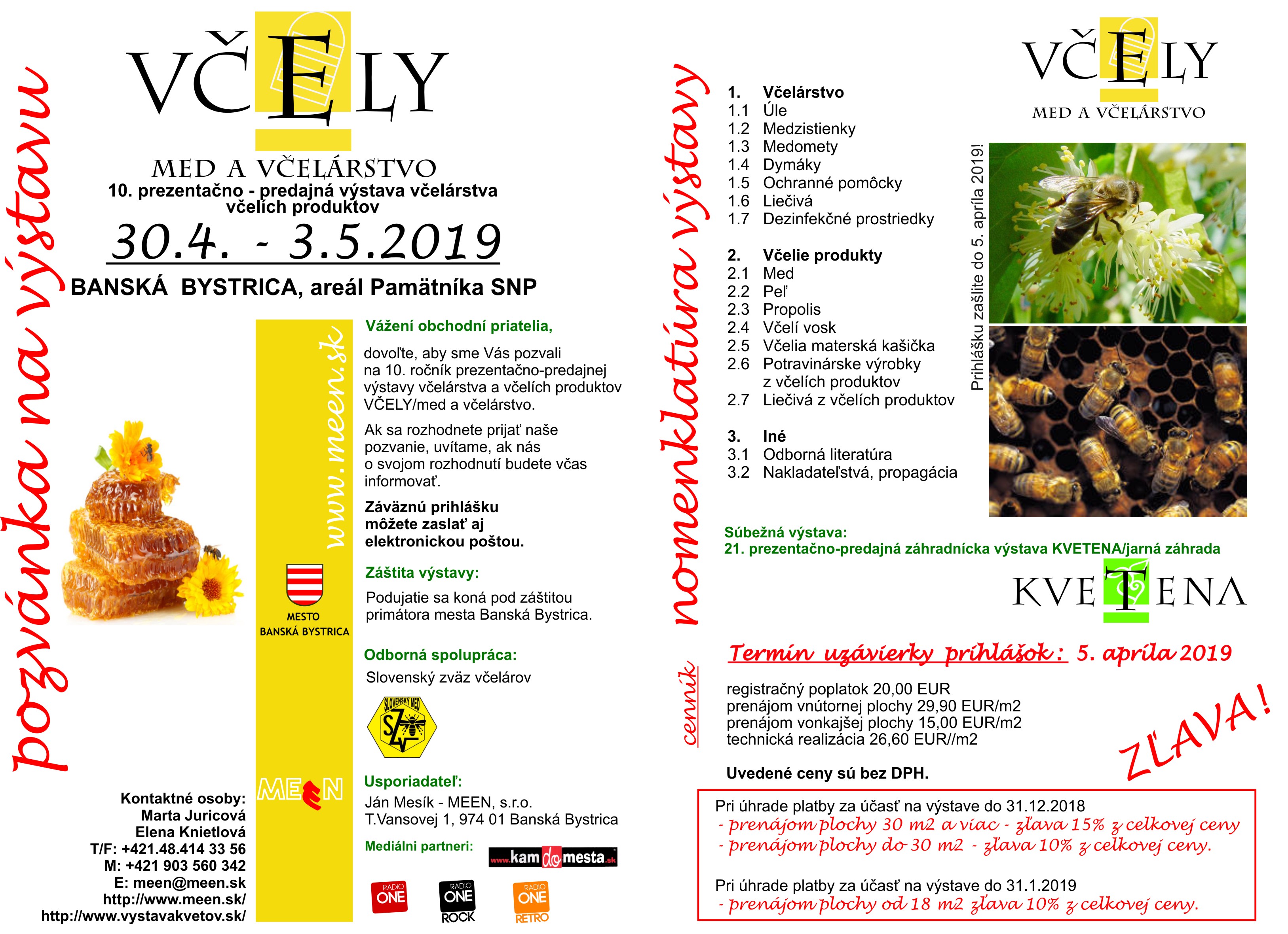 Pripravujeme 21. ročník záhradníckej výstavy Kvetena / jarná záhrada. Stretneme sa opäť v areáli Múzea SNP v Banskej Bystrici v dňoch 30.4. - 3.5.2019. Súbežnou výstavou bude opäť výstava včelárstva a včelích produktov Včely / med a včelárstvo. Bude to už jej 10. ročník.