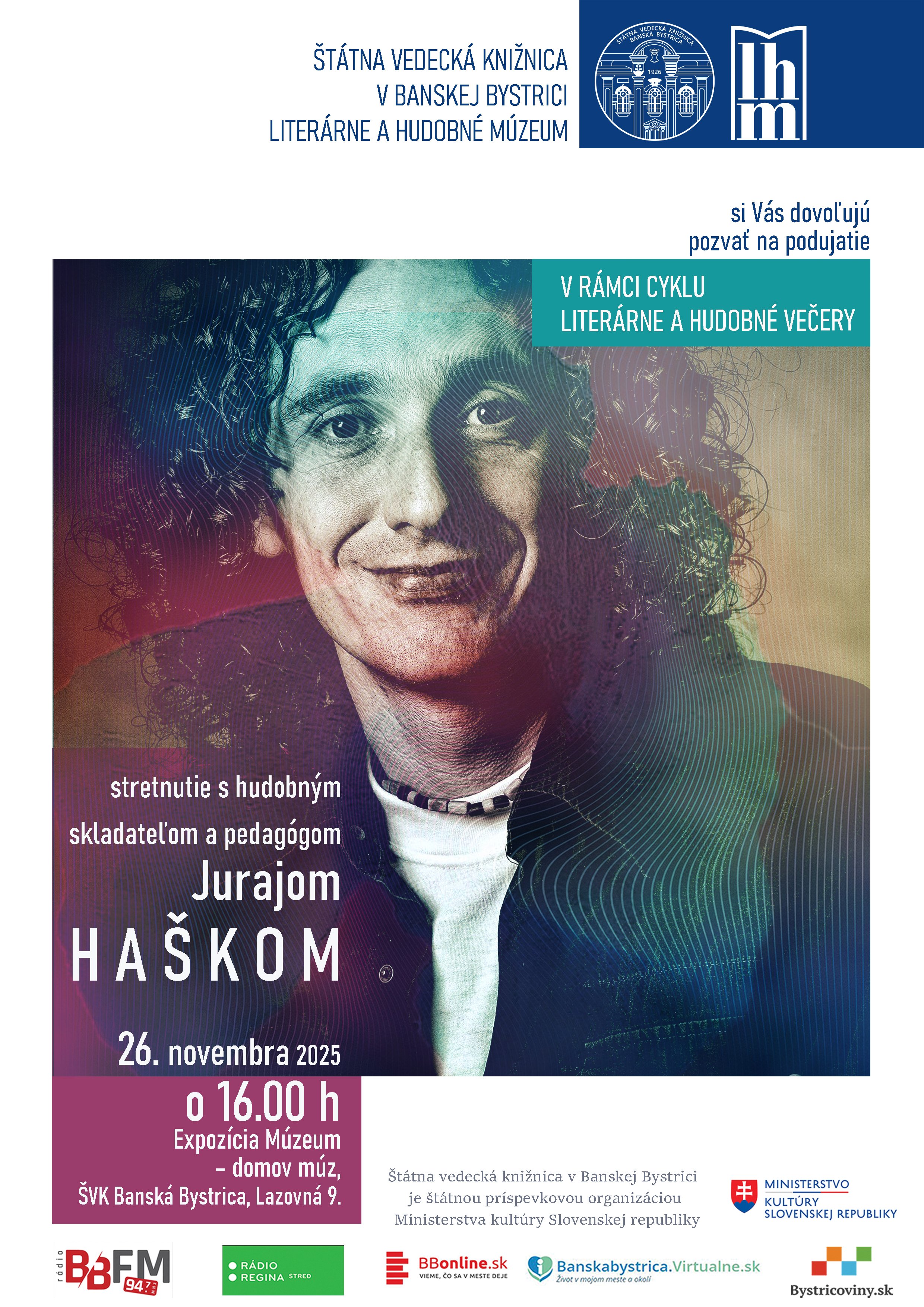 vás srdečne pozýva na podujatie v rámci cyklu Literárne a hudobné večery na stretnutie s hudobným skladateľom a pedagógom Jurajom Haškom