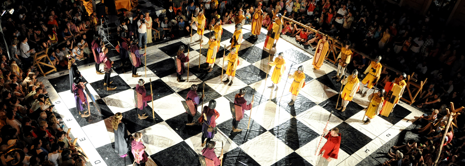 Každoročne sa na obriu šachovnicu postaví 32 mladých i profesionálnych šermiarov, aby pred preplneným námestím zviedli súboj, počas ktorého sa stali doslova figúrkami v rukách profesionálnych šachistov. Živý šach nie je novinkou. Touto hrou si krátili voľné chvíle panovníci už v 8. storočí. Moderná podoba živého šachu síce neobsahuje súboje na život a na smrť ako v minulosti, na druhej strane však ponúka neopakovateľný pocit a zážitok pre každého diváka, vrátane detí. Špecifickým prvkom banskoštiavnického podujatia je fakt, že ho hrajú dvaja poprední veľmajstri naslepo, so zaviazanými očami. Okrem partie živého šachu sa v deň podujatia konajú trhy s bohatým stredovekým kultúrnym programom a zároveň aj niekoľkodňový šachový turnaj.