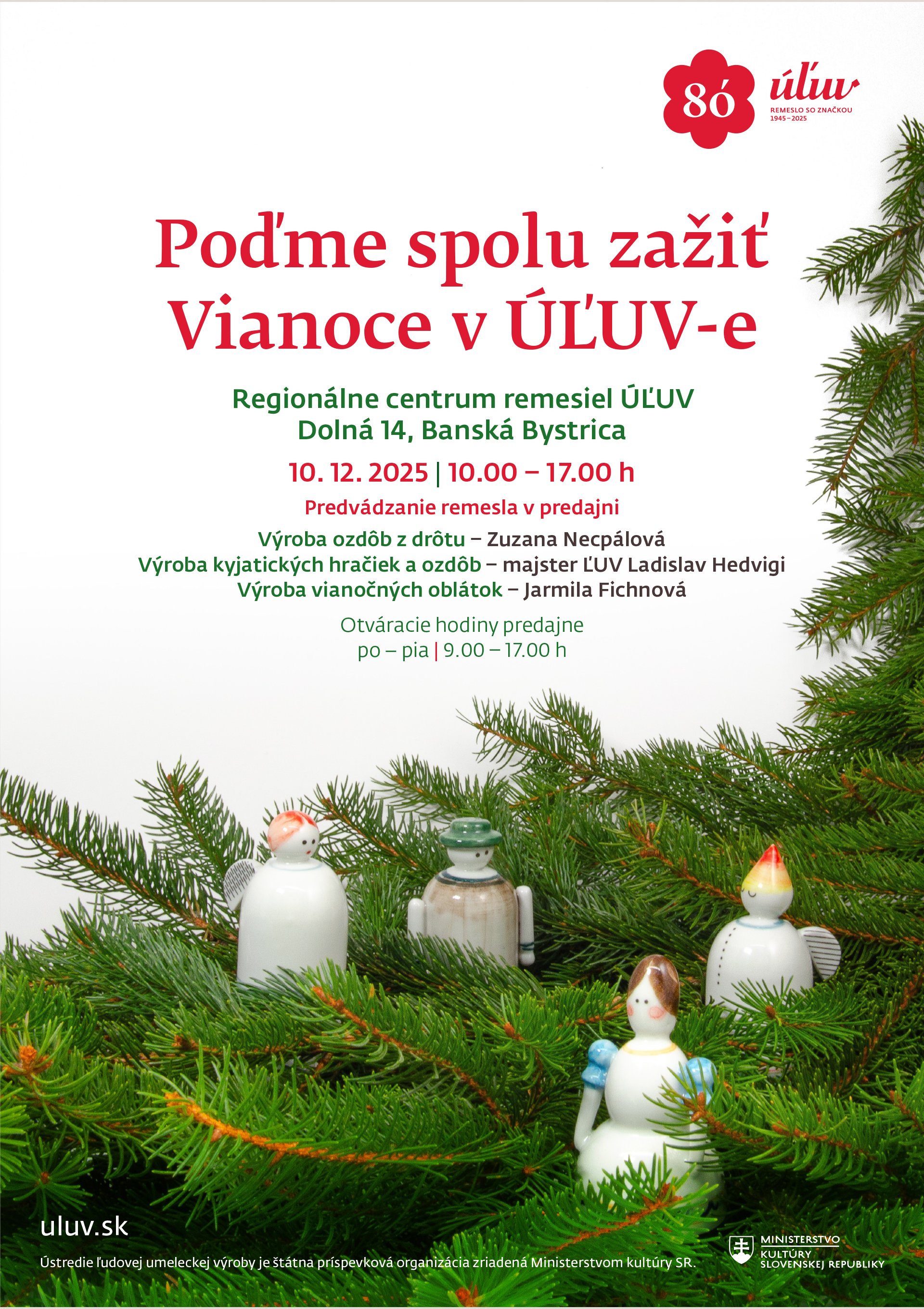 V jeden predvianočný deň, v stredu 10. decembra 2025, sme si pre vás vo všetkých troch Regionálnych centrách remesiel ÚĽUV v Bratislave, Banskej Bystrici a Košiciach pripravili bohatý program.