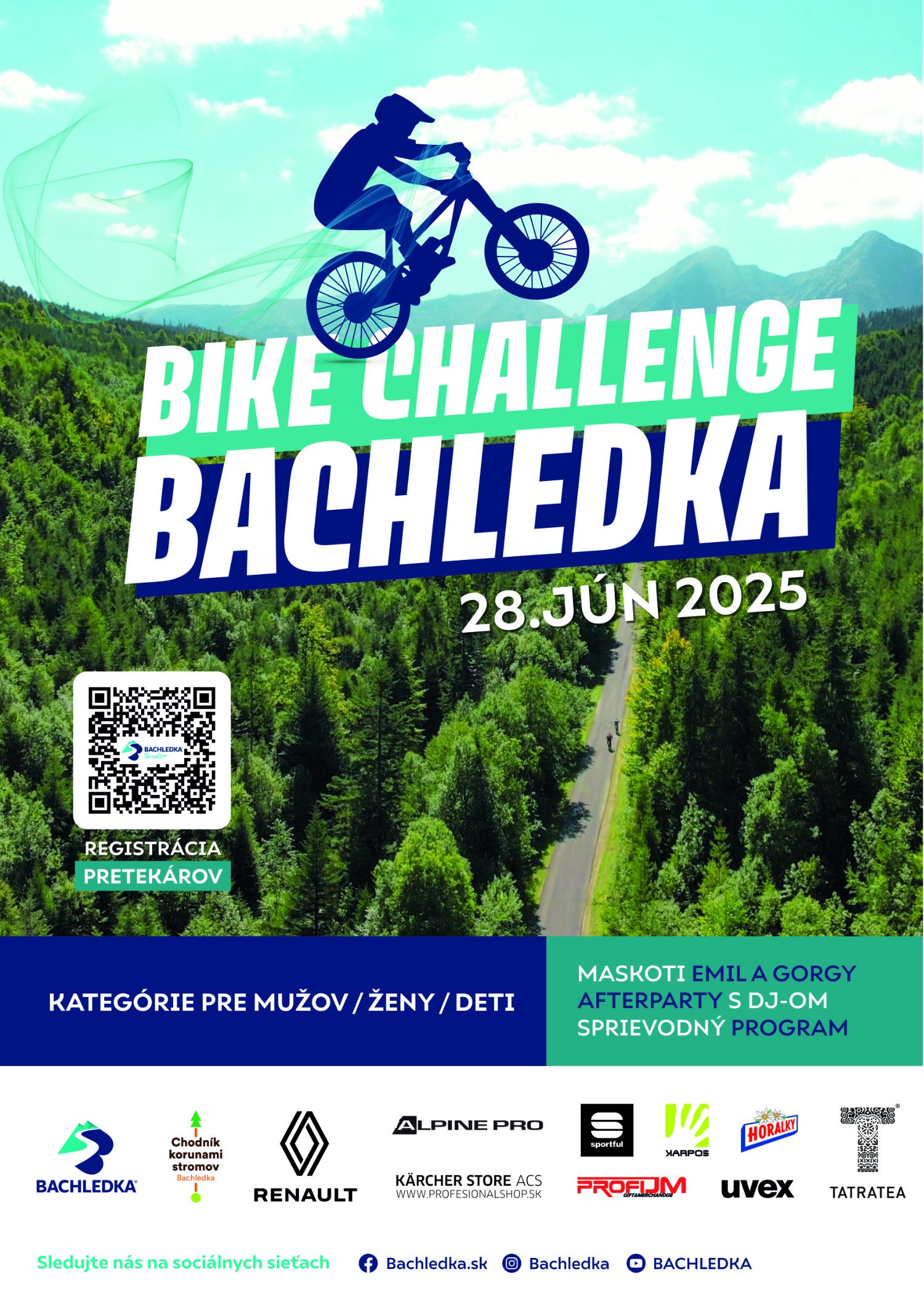 Nezmeškajte Bike Challenge BACHLEDKA – výnimočný deň plný športu, zábavy a krásnych výhľadov. Zarezervujte si miesto na štarte a staňte sa súčasťou jedného z najživších cykloeventov tohto leta!