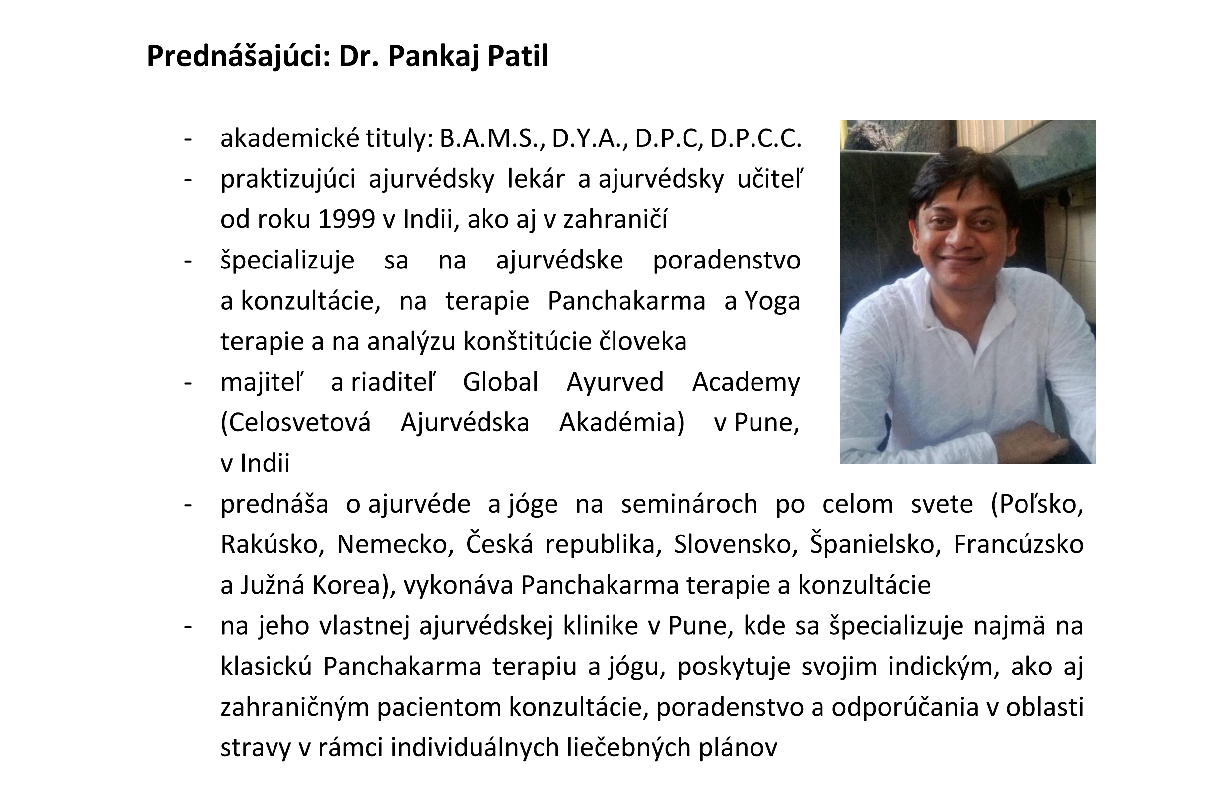 PREDNÁŠAJÚCI: Dr. PANKAJ PATIL, ajurvédsky doktor, India, Pune (preklad z anglického jazyka je zabezpečený)