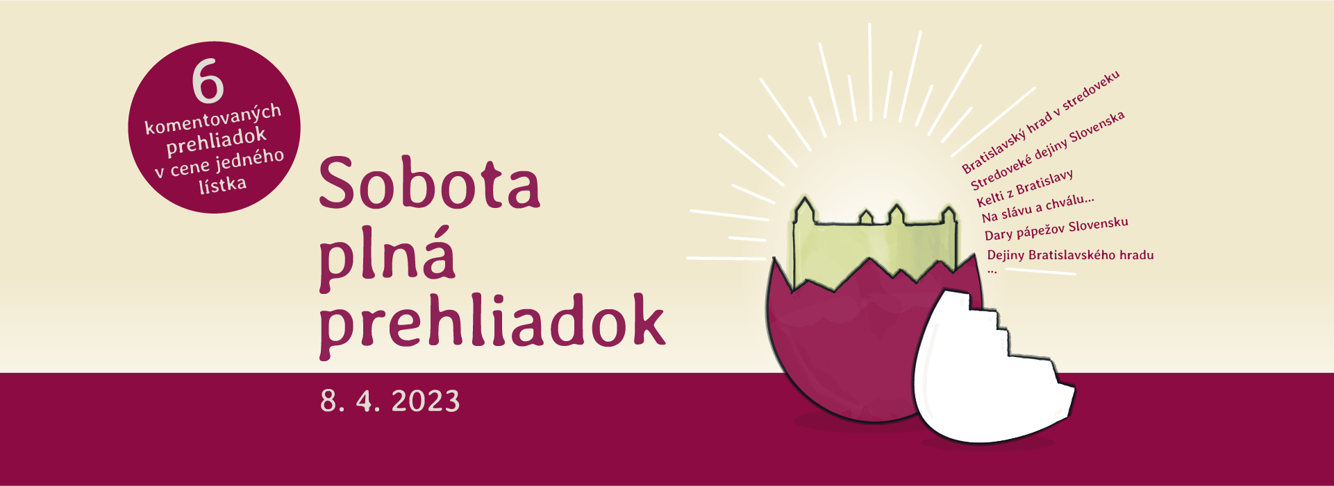 Počas soboty 8. 4. 2023 si v cene vstupného môžete pozrieť až 6 rôznych komentovaných prehliadok!