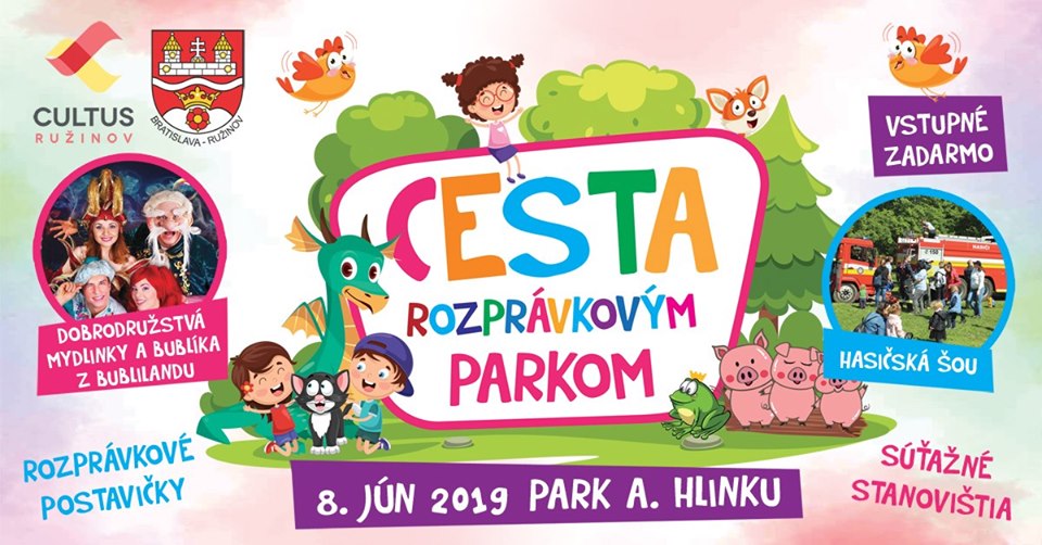 Druhá júnová sobota, 8. júna 2019, bude v Ružinove patriť deťom. Kúzelný rozprávkový park tentokrát nenájdete za siedmimi horami a siedmimi dolami ale priamo v centre Ružinova a to v Parku Andreja Hlinku. Na deti budú medzi 15. a 18. hodinou čakať stanovištia s hrami, úlohami a súťažami s rozprávkovými postavičkami.