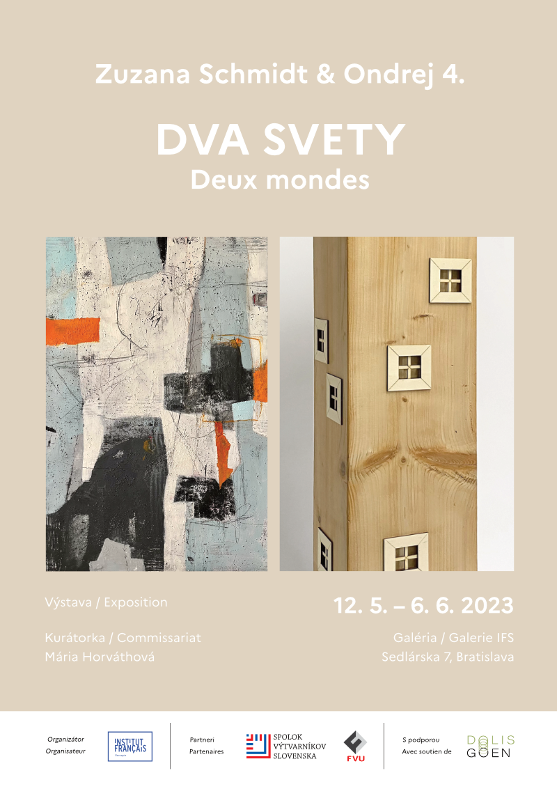 Výstava maliarky Zuzany Schmidt a sochára Ondreja 4. vo Francúzskom inštitúte na Slovensku má symbolický názov Dva svety. Je to priliehavá metafora, reflektujúca na jednej strane vizuálnu rozmanitosť ich výtvarného prejavu, na druhej strane naznačujúca i istú dualitu niektorých inšpiračných prameňov, ktoré sú v ich dielach evidentné. Napriek širokej škále podnetov, ktoré ponúka história i dnešok, obaja podľahli inšpiratívnej príťažlivosti francúzskej kultúry a sústredili sa na niektoré jej pozoruhodné momenty, neoddeliteľné späté s metropolou Francúzska – s Parížom.