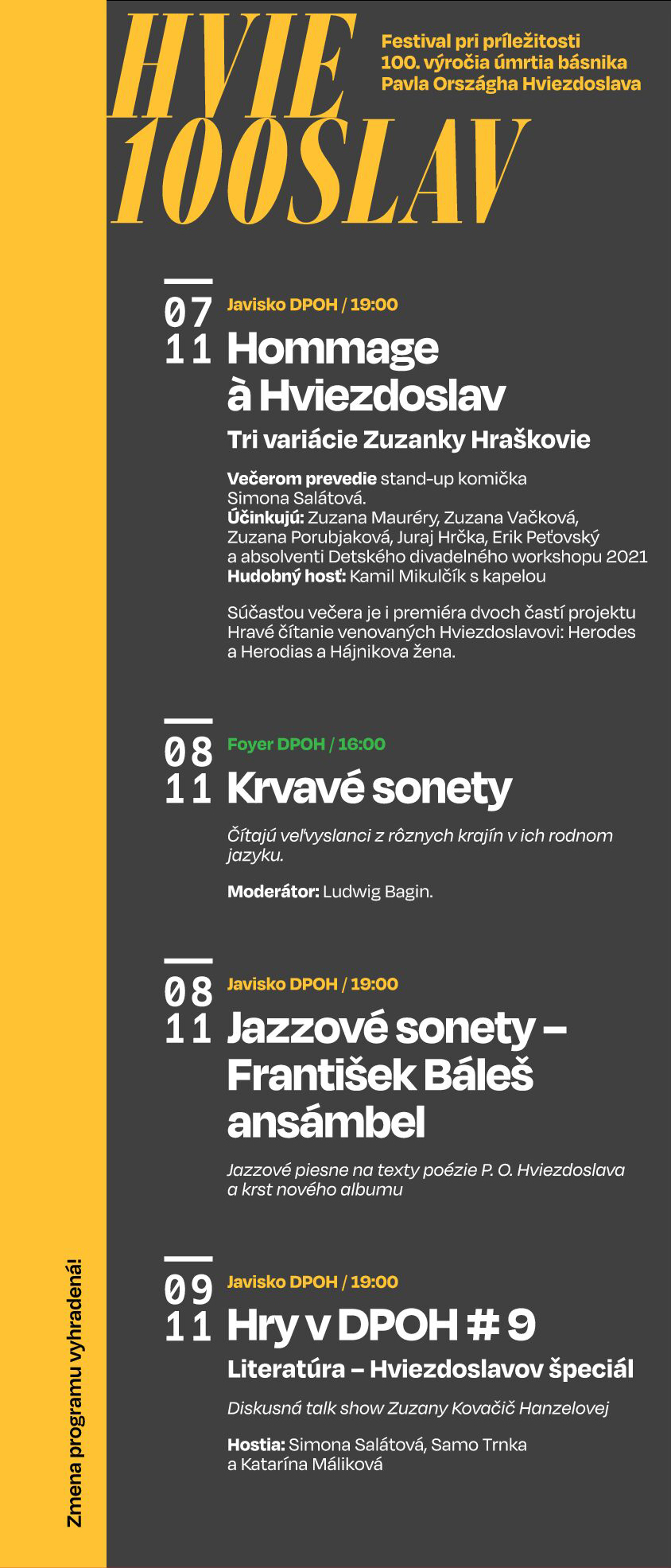 Súčasťou večera je i premiéra dvoch častí projektu Hravé čítanie venovaných Hviezdoslavovi: Herodes a Herodias a Hájnikova žena.