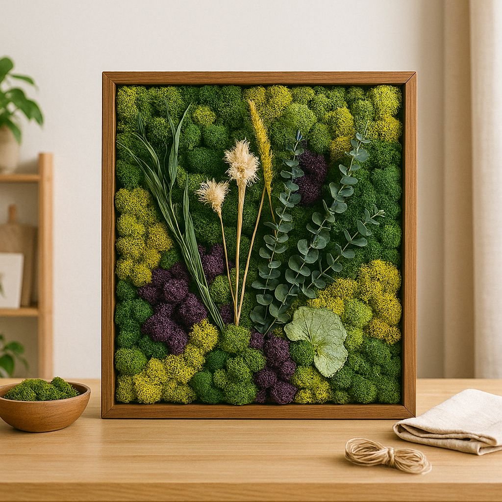 Na kurze si vytvoríš vlastný machový obraz – jedinečný dekoračný prvok z konzervovaného machu, ktorý oživí každý interiér a vydrží roky bez údržby. Obrázky v popise sú ilustračné.