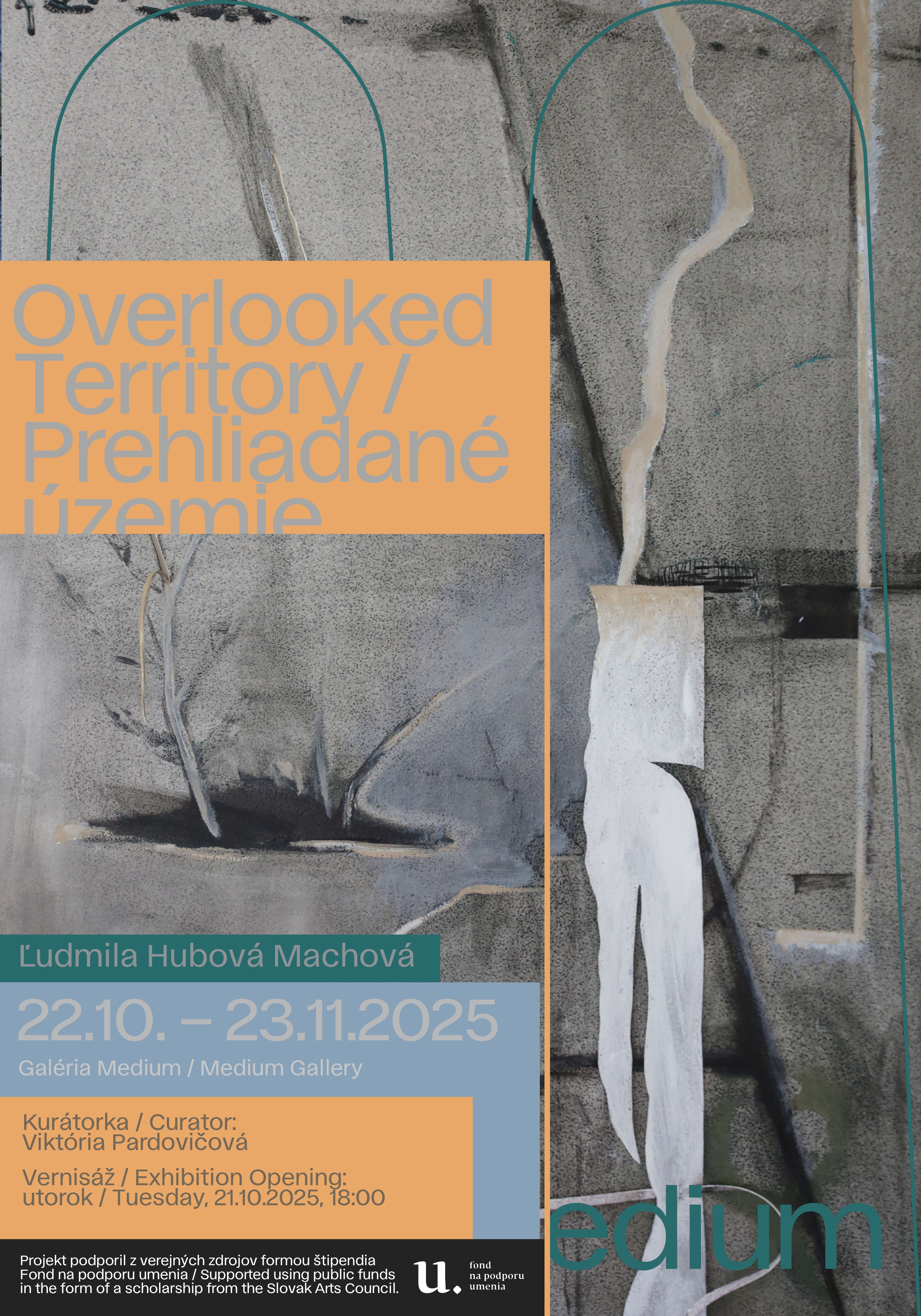 Výstava Overlooked Territory maliarky a vizuálnej umelkyne Ľudmily H. Machovej nadväzuje na jej rezidenčný pobyt v Paríži a projekty Synanthrope (2024) alebo Archivist of Hybrids (2023). Citlivým sledovaním a skúmaním mestského prostredia, formovaného technologickým plánovaním a typicky človekom pretváraným urbánnym územím sa autorka dostáva k štúdiu špecifických foriem života – synantropným druhom rastlín a plevelom. Tie vníma ako aktérstvo, schopné vzdorovať nepriaznivým podmienkam a predstavovať tak alternatívu (často nechcené oživenie) betónových polí alebo striktne formovaných a nákladne udržiavaných záhrad. Autorka prostredníctvom priestorovej inštalácie malieb, objektov a fotografií zaznamenáva, modifikuje a rozvíja naratívy týchto rastlín ako špecifického spolu obyvateľstva mesta. V škárach, nikách a ďalších (medzi)priestoroch, sa potom rodia situácie aj partnerstvá, ktoré práve svojou schopnosťou odporu a odolnosťou pripomínajú potrebu návratu k empatii a nehierarchickej medzidruhovej spolupráci, no rovnako odhodlanie čeliť normatívnym rámcom a diktovaným mocenským štruktúram.
