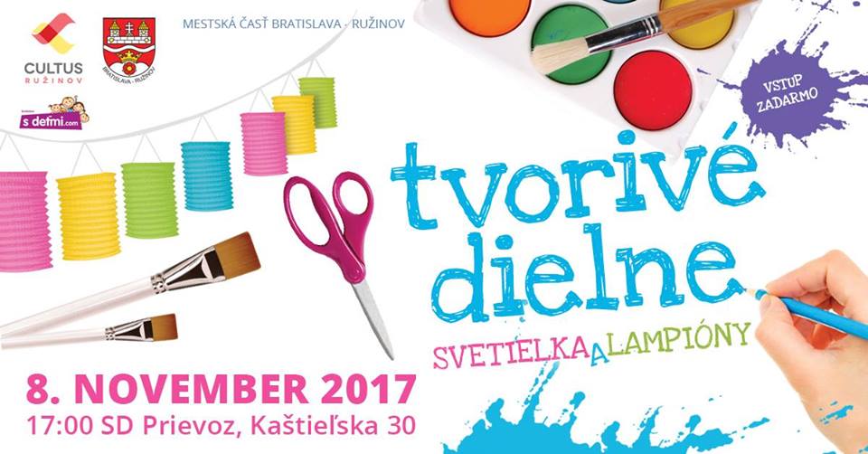 Mestská časť Bratislava-Ružinov a Cultus Ružinov vás pozývajú na podujatie TVORIVÉ DIELNE, ktoré sa uskutoční v stredu 8.11.2017 o 17.00 h v Spoločenskom dome Prievoz.