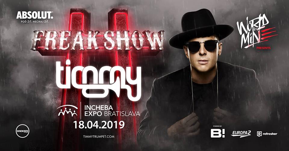Prosím privítajte na pódiu WORLD IS MINE, priamo z Austrálie jeden z najvýnimočnejších živích vystupujúcich, showman a legenda v jednom, Timmy Trumpet poprvýkrát v Bratislave. Timmy je víťazom prestížnych ocenení, jeho predaje presahujú hranicu multi-platiny a v najznámejšej ankete DJ Mag Top 100 je zaradený v TOP50.