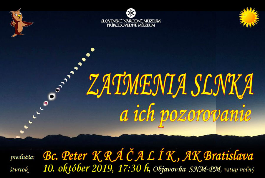 Vo štvrtok 10. októbra 2019 o 17:30 hod. Vás pozývam do Objavovne SNM-PM na Vajanského nábr. 2 na prednášku pre záujemcov zo širokej verejnosti „Zatmenia a ich pozorovanie“