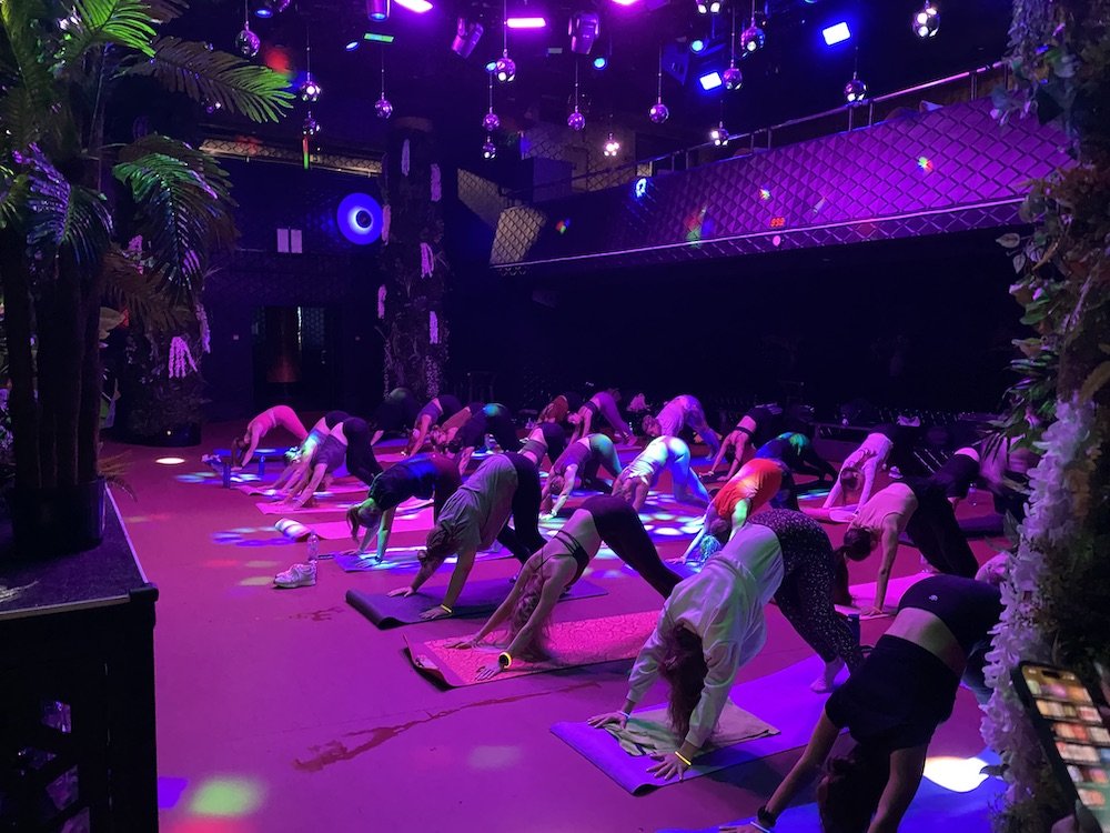 Techno joga sa často koná v kreatívnych priestoroch alebo vonku s efektným osvetlením a vytvára zábavnú, komunitnú atmosféru, ktorá je spoločenská, ale stále zakorenená vo wellness.
