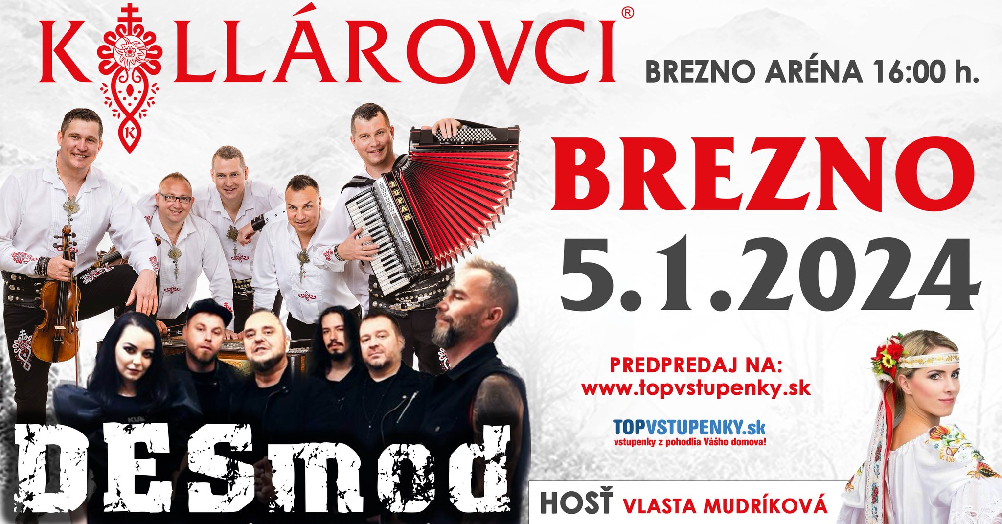 Priatelia, srdečne Vás všetkých pozývame na fantastické podujatie: NOVOROČNÝ GALAKONCERT- BREZNO ARÉNA- KOLLÁROVCI- DESMOD- VLASTA MUDRÍKOVA.
