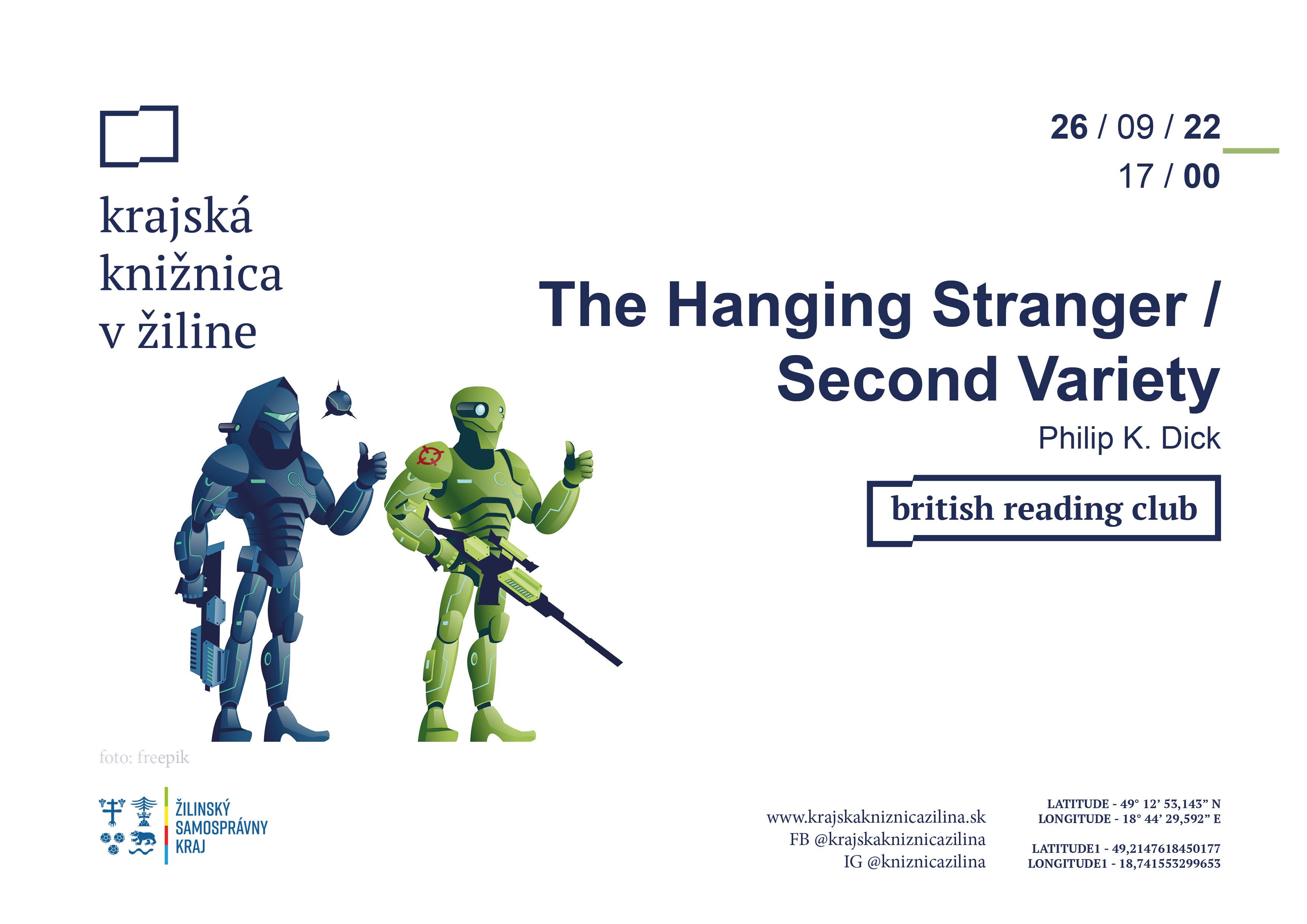 Prvé stretnutie britského klubu po letných prázdninách bude venované majstrovi sci-fi, Philipovi K. Dickovi. Vybrali sme od neho poviedky The Hanging Stranger a Second Variety a spolu sa o nich porozprávame v utorok 26. septembra 2023 o 17:00. Môžete si ich prečítať online tu alebo si vypočuť ich audio verzie tu. Pozývame všetkých našich čitateľov od 15 rokov aby sa pridali. Stretnutie prebieha v anglickom jazyku.