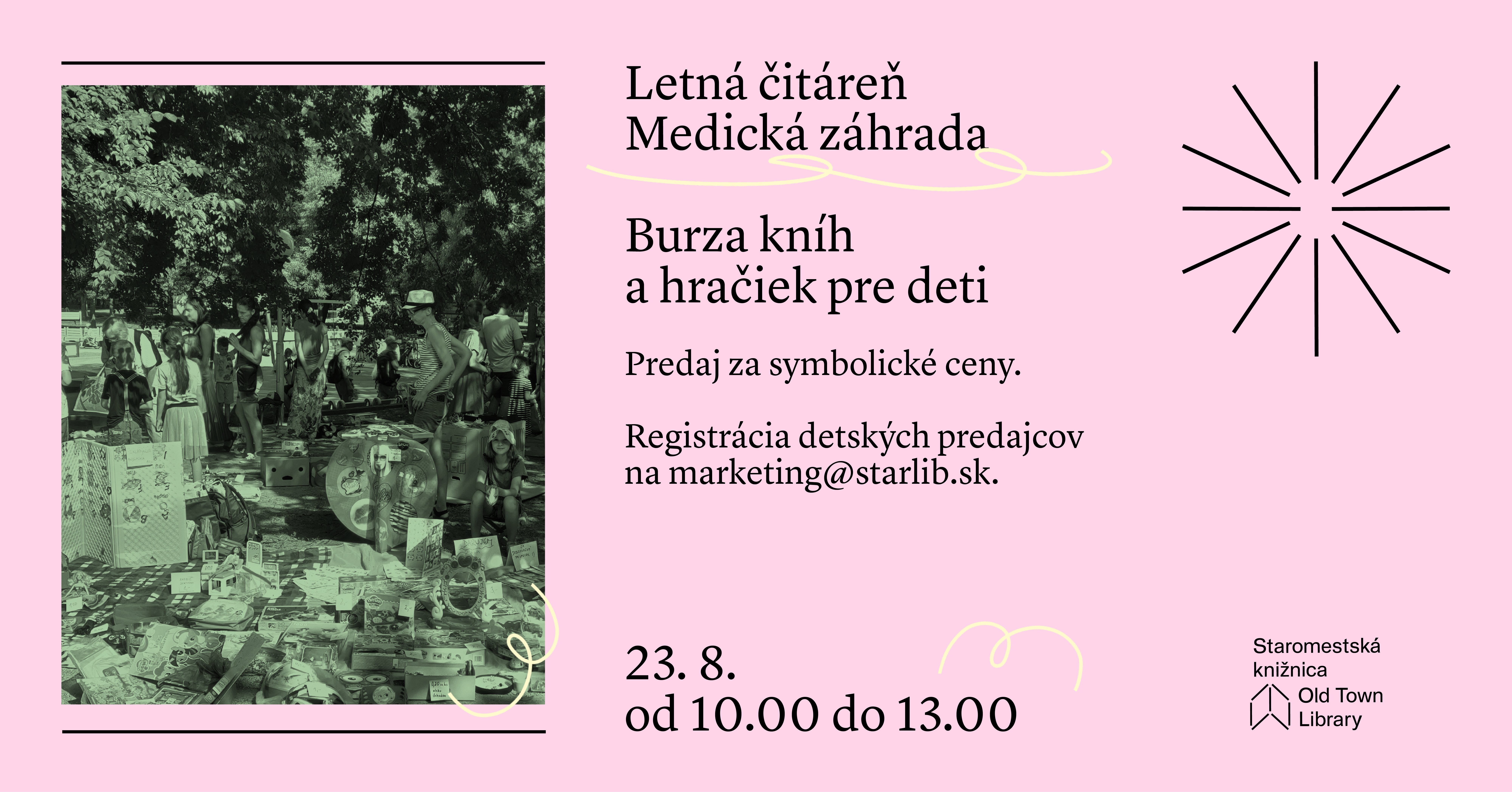 Vstup voľný. Tešíme sa na všetkých malých podnikateľov 23. augusta od 10.00 do 13.00 v Letnej čitárni v Medickej záhrade!