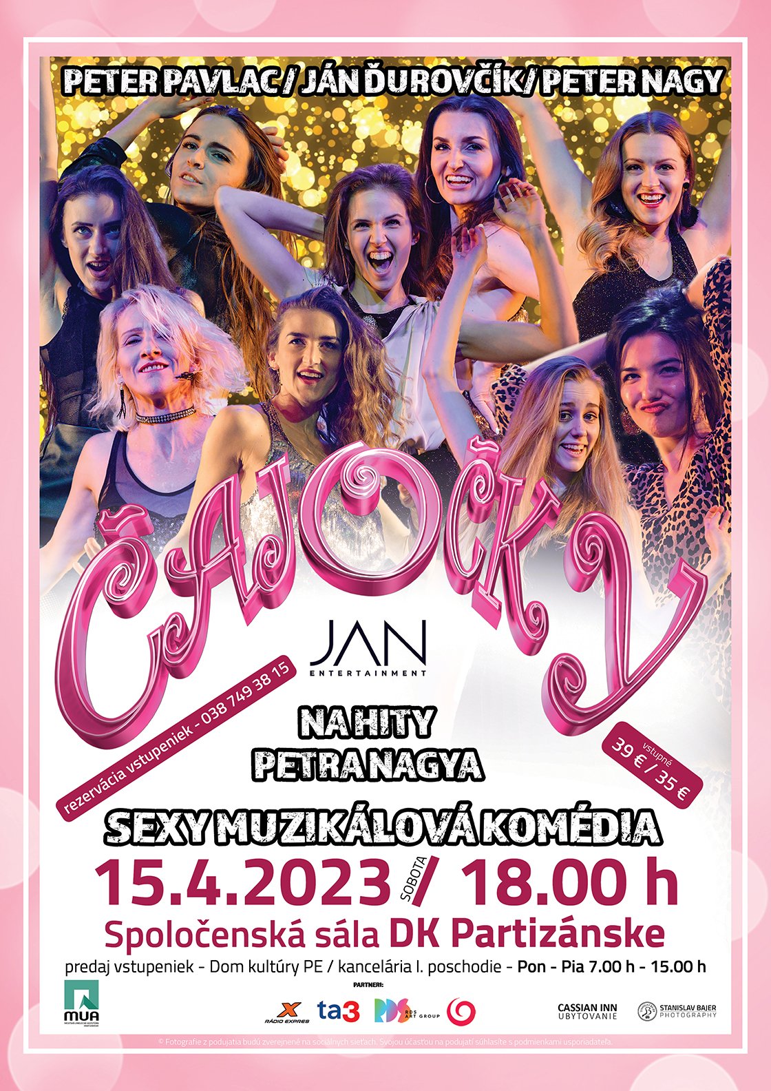 Pozývame vás na muzikálovú komédiu Čajočky, ktorá sa uskutoční v sobotu 15. apríla 2023 o 18.00 hod. v spoločenskej sále Domu kultúry v Partizánskom.
