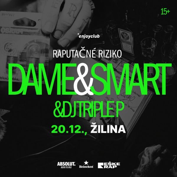 Dame & Smart, 2/3 legendárnej skupiny DMS opäť vyrážajú demolovať kluby. Po minuloročnej Trapohory Tour, ktorou absolútne vybláznili žilinský *enjoyclub, prichádzajú s novým albumom - Raputačné Riziko.
