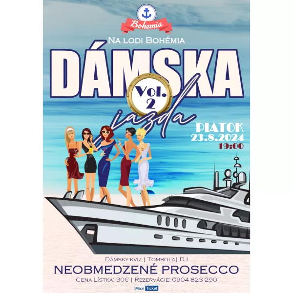 Zažite dámsku jazdu na lodi Bohemia. Jazda prináša neobmedzenú konzumáciu Prosecca v spojení so zábavným kvízom a tombolou.