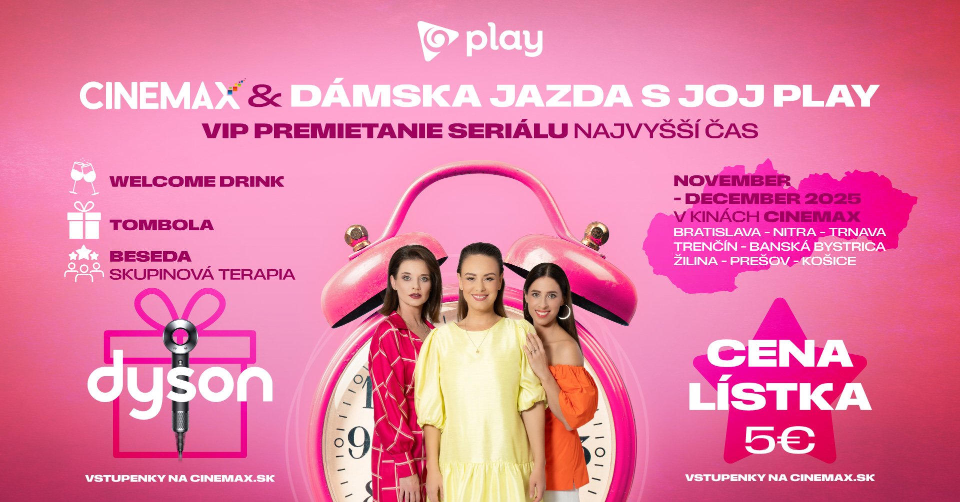 Príď na Dámsku jazdu s JOJ PLAY do CINEMAXU v Košiciach a dopraj sebe aj kamoškám večer len pre ženy.
