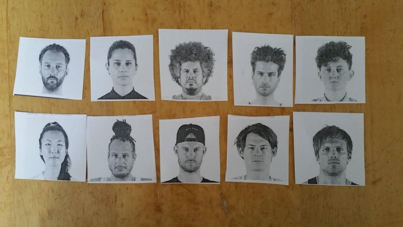 Proces tvorenia portrétov bol náročný: ľudia museli sedieť viac-menej bez pohybu po dobu 30 minút. Preto autor využil staršie kadernícke kreslo, v ktorom mohol hlavu modela zafixovať.