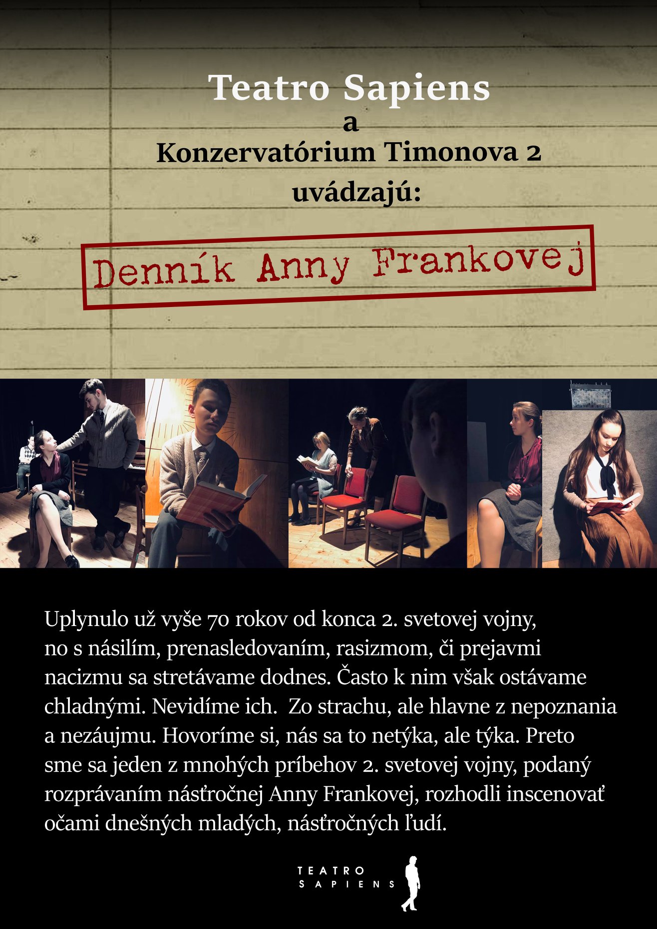 Pozývame Vás na večerné divadelné predstavenie – Denník Anny Frankovej, ktoré sa uskutoční 28.3.2019 o 19.00 hod. v Kultúrnom dome v Barci. Divadelné predstavenie je vhodné pre študentov a dospelých. Vstupné je symbolických 1,50€, avšak zážitok z tohto predstavenia bude mať ďaleko väčšiu hodnotu.