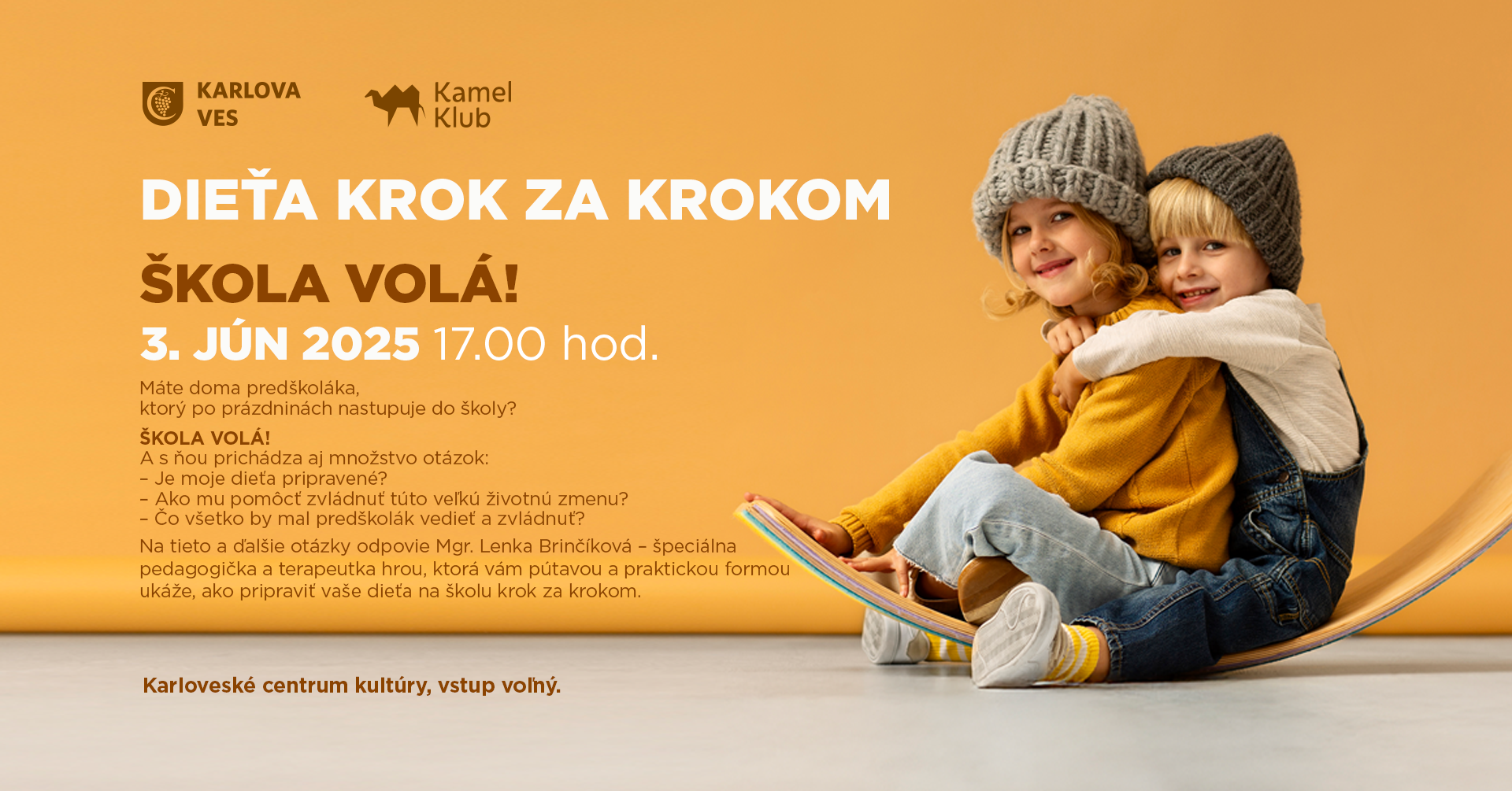 Na tieto a ďalšie otázky odpovie Mgr. Lenka Brinčíková – špeciálna pedagogička a terapeutka hrou, ktorá vám pútavou a praktickou formou ukáže, ako pripraviť vaše dieťa na školu krok za krokom.