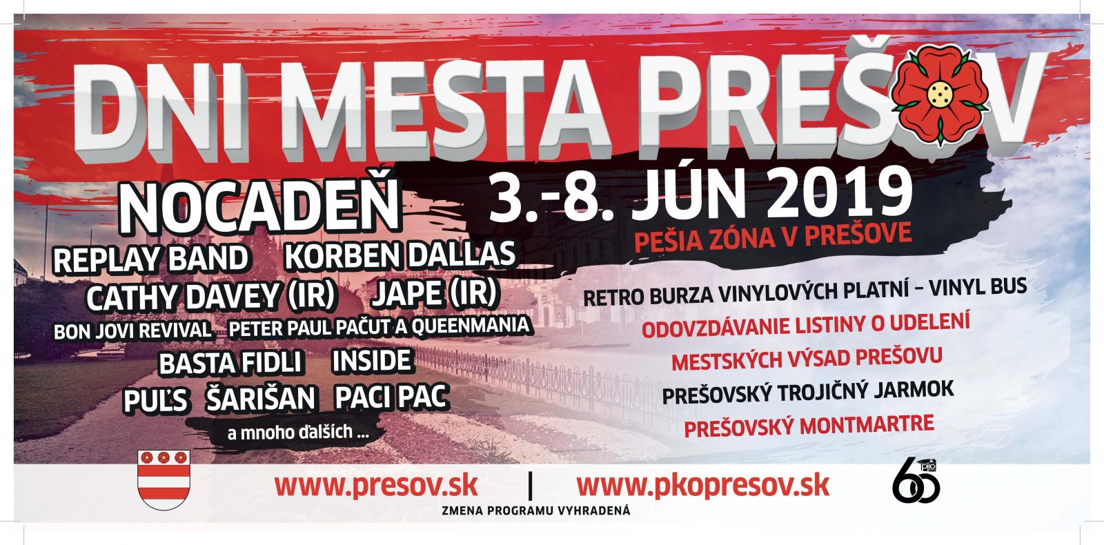 Od 3. do 8. júna 2019 na vás v Prešove čaká skvelá hudba, rôzne tanečné vystúpenia, prešovský Montmartre, Trojičný jarmok a centrum mesta plné atrakcií a zábavy ;)