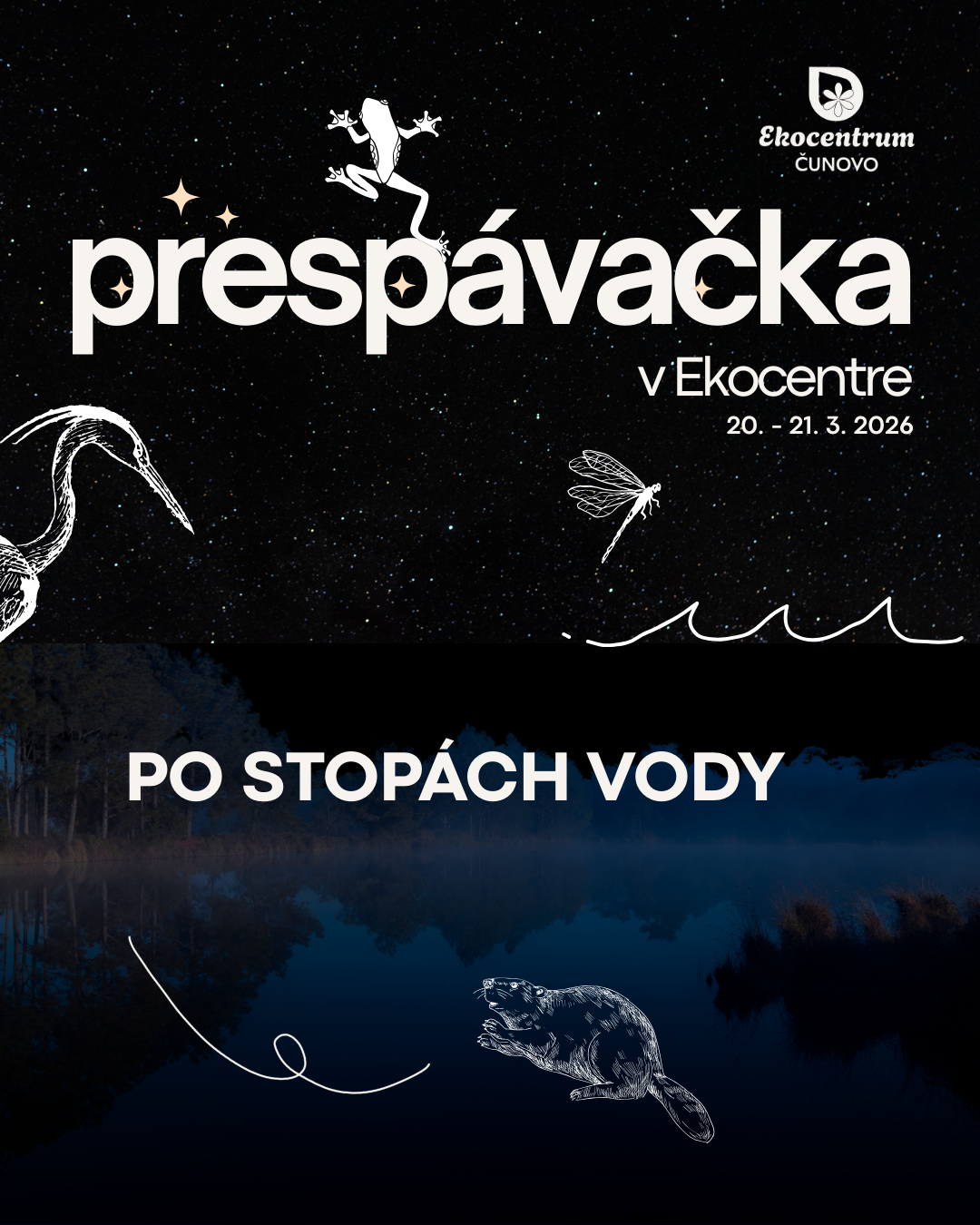 Spoločne sa vydáme po stopách vody, objavíme jej nekonečný kolobeh a pokúsime sa vyriešiť záhadu zmiznutého obyvateľa našich brehov. Čaká nás noc plná experimentov, tímových hier a napínavej pátračky v teréne, na ktorej konci možno odhalíme legendu o nočnom staviteľovi.