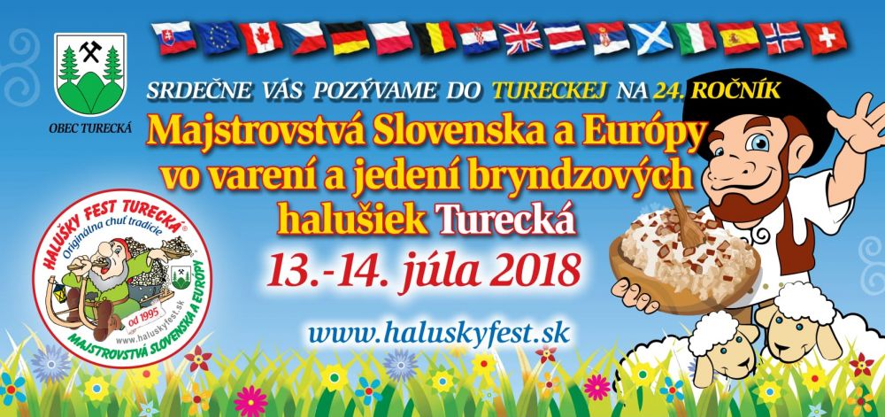 Rozhodne si nenechajte ujsť ďalší - už 24. ročník súťaže - Majstrovstvá Slovenska a Európy vo varení a jedení halušiek v Tureckej, známu prehliadku ľudových remesiel spojenú s predajom tradičných výrobkov a nezabudnuteľný kultúrny zážitok - Halušky FEST Turecká 2018. Podujatie sa uskutoční v prázdninových dňoch v termíne 13. a 14. júla 2018.