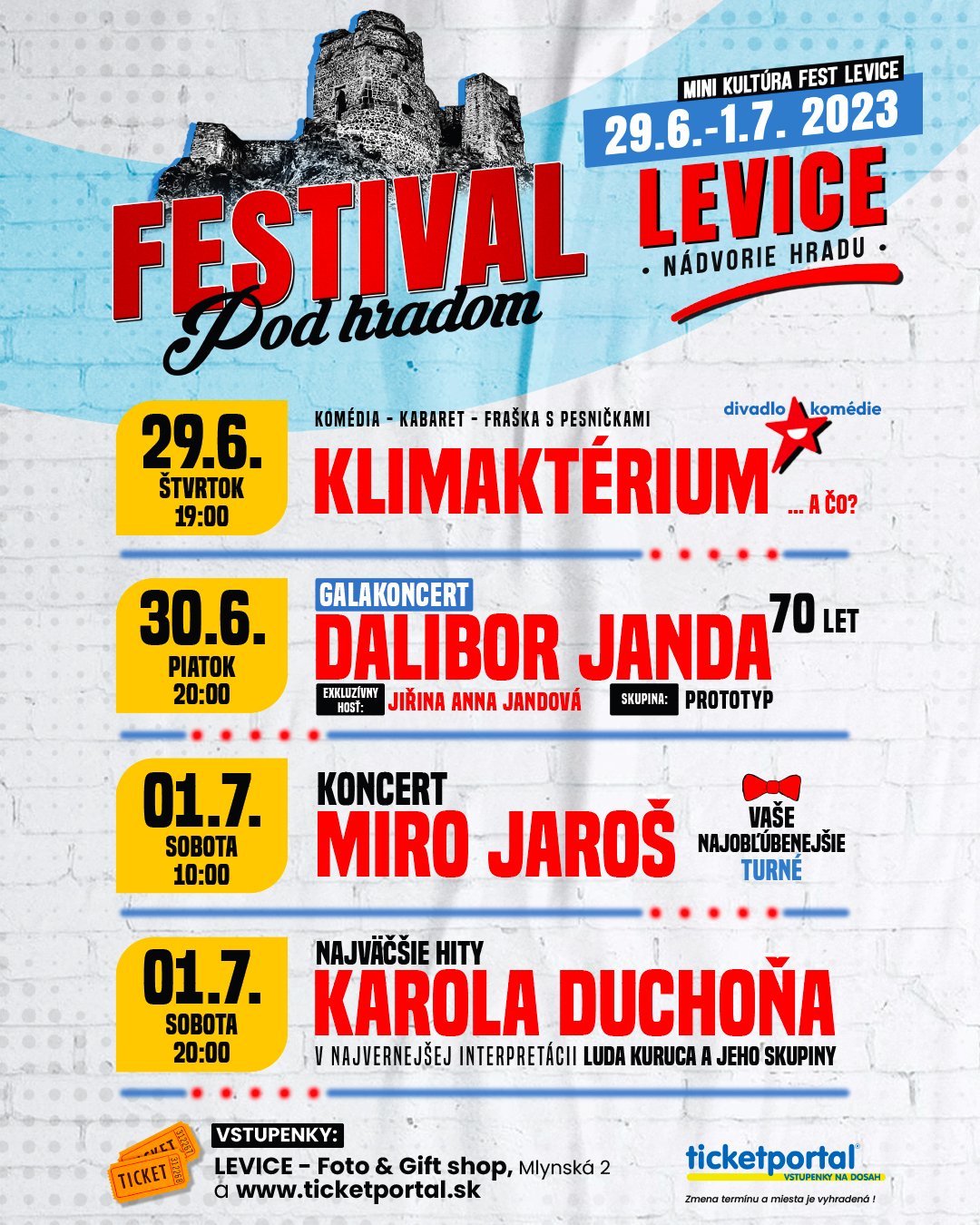 Multižánrový mini festival Pod hradom sa uskutoční na nádvorí Levického hradu s programom: