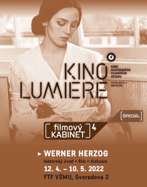 Werner Herzog, kľúčový predstaviteľ nemeckej i svetovej kinematografie oslávi túto jeseň 80. narodeniny. Počas šiestich dekád nakrútil dovedna okolo 70 hraných i dokumentárnych filmov nespočetného množstva fascinujúcich tém, všemožných rozsahov, v rôznych krajinách i jazykoch. Jeho všestranná osobnosť sa neobmedzuje len na oblasť kinematografie, je aj režisérom opery, či spisovateľom, ktorý by bez problémov naplnil nejeden semester Filmového kabinetu. V priebehu dvoch mesiacov jesenného špeciálu, ktorý nasleduje po treťom, teda záverečnom chronologickom semestri, ponúkne kabinet rytmicky sa striedajúce hrané i dokumentárne diela Wernera Herzoga v počte šesť programových blokov, ktoré na jednej strane podrobne preskúmajú jeho mnohorakú, nasýtenú tvorbu z historického, filmovo-teoretického, filozofického i spoločensko-politického hľadiska a zároveň plynulo nadviažu na nový nemecký film – jednu z prednášok predchádzajúceho semestra. Werner Herzog pozoruhodným spôsobom prepája minulosť a budúcnosť. V súčasnej "postfaktuálnej" dobe, keď sa spoločnosť triešti do protipólov konzervativizmu hlásajúceho návrat k tradičným hodnotám na jednej strane a progresivizmu otočeného najmä do budúcnosti na strane druhej, sú autori ako Werner Herzog, ktorí prepájajú históriu s ohľadom na súčasnosť a demaskujú pseudohodnoty, obzvlášť dôležití.