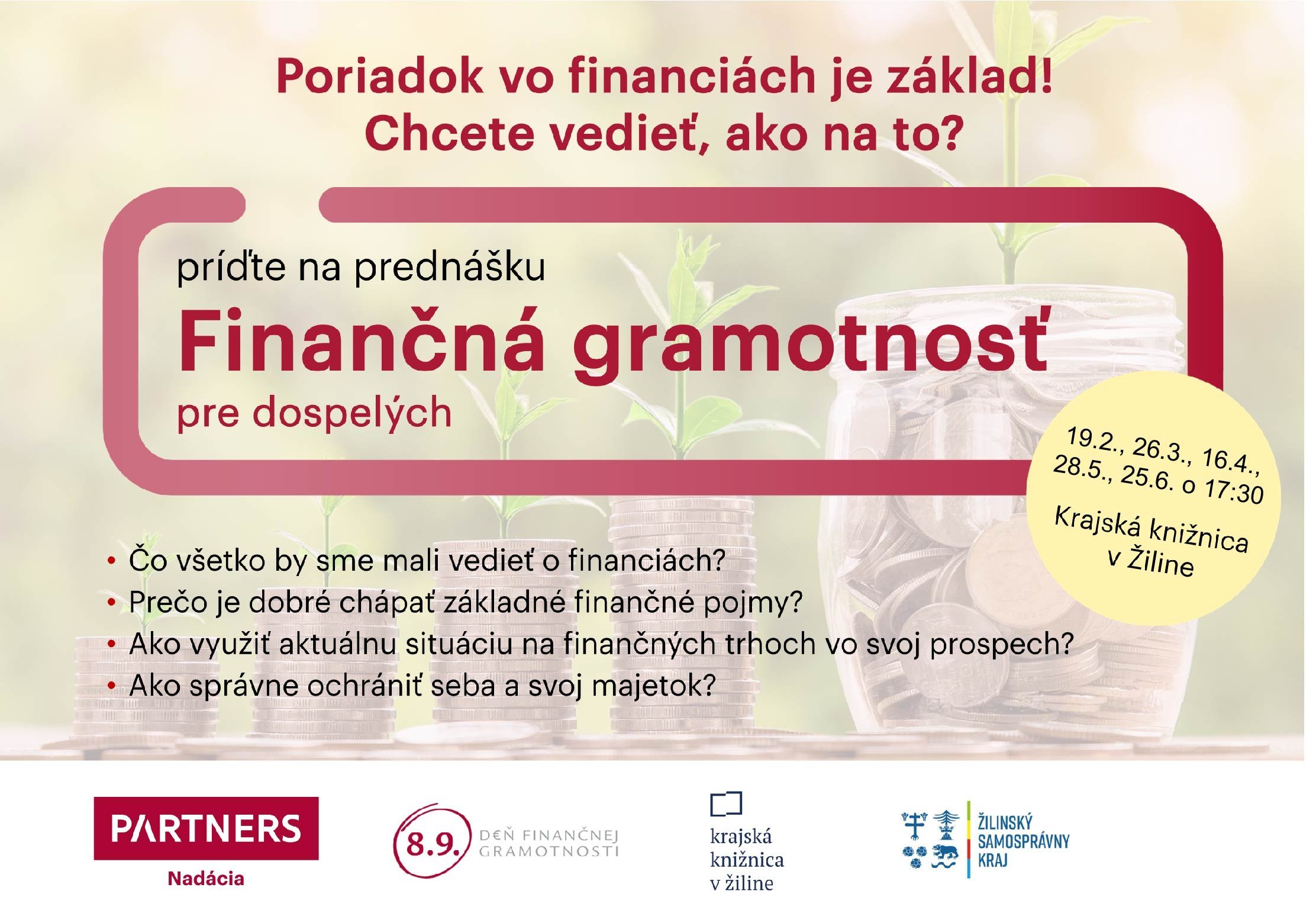 Pokračujeme vo finančnom vzdelávaní dospelých. Čo všetko by sme mali vedieť o financiách? Prečo je dobre chápať základné princípy finančného plánovania a poznať základné finančné pojmy? Dozviete sa ako využiť aktuálnu situáciu na finančných trhoch vo svoj prospech a zhodnotiť lepšie svoje úspory. Zistite ako finančne plánovať, či a ako správne ochrániť seba a svoj majetok. Zároveň sú pre vás pripravené úlohy na zamyslenie či praktické príklady, ktoré vás pripravia na realizáciu správnych finančných rozhodnutí, aby ste sa dokázali postarať o seba a svoju rodinu.