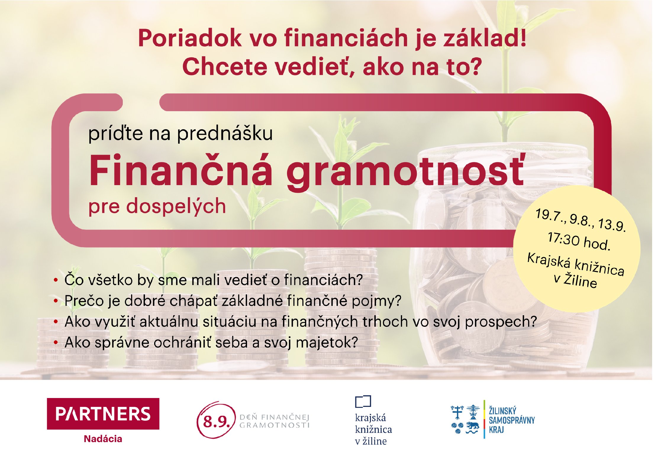 Pokračujeme vo finančnom vzdelávaní dospelých aj v nasledujúcich troch mesiacoch. Čo všetko by sme mali vedieť o financiách? Prečo je dobre chápať základné princípy finančného plánovania a poznať základné finančné pojmy? Dozviete sa ako využiť aktuálnu situáciu na finančných trhoch vo svoj prospech a zhodnotiť lepšie svoje úspory. Zistite ako finančne plánovať, či a ako správne ochrániť seba a svoj majetok. Zároveň sú pre vás pripravené úlohy na zamyslenie či praktické príklady, ktoré vás pripravia na realizáciu správnych finančných rozhodnutí, aby ste sa dokázali postarať o seba a svoju rodinu.