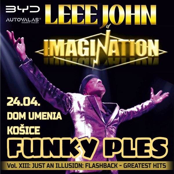 Legendárna Košická funky párty je späť! Tanečno-hudobné podujatie roka prináša už 14 rokov to najlepšie z funky, oldies a disco tanečnej scény a to hneď na dvoch tanečných pódiách. Opäť vám predstavíme naživo nielen svetové hviezdy, ale aj kvalitných lokálnych DJs, ktorý pre vás majú nachystané more kvalitnej tanečnej hudby. Zo Spojeného kráľovstva prichádza žijúca legenda, megastar a líder slávnej kapely IMAGINATION – jedinečný spevák a šoumen LEEE JOHN, ktorý vystúpi naživo v sprievode svojej skupiny. Ich top svetové hity ako Just In Illusion, Music and Lights, Flashback alebo Body Talk sa umiestnili na popredných miestach svetových hitparád. V osemdesiatych a deväťdesiatych rokoch získala skupina obrovský medzinárodný úspech vrátane 4 platinových a 9 zlatých platní. Skupina IMAGINATION bola známa svojím výnimočným zvukom 80. rokov a na našom území nevystupovala takmer 40 rokov! Okrem nich privítame aj kvalitných domácich hudobníkov, funkovo-tanečnú pecku - formáciu KISS MY EX! s exkluzívnym hosťom, ktorý bude prekvapením večera. Predstaví sa aj plejáda kvalitných slovenských DJ-ov - napríklad FUNKY MONKEYS DJS, INCOGNITO DJ a v Malej sále Domu umenia pre vás pripravia skvelú Disco Funk párty DISCOTOWN s modernou Disco atmosférou djs: Robo Matejka ( SE), DJ Carlos ( KE), Incognito ( KE).