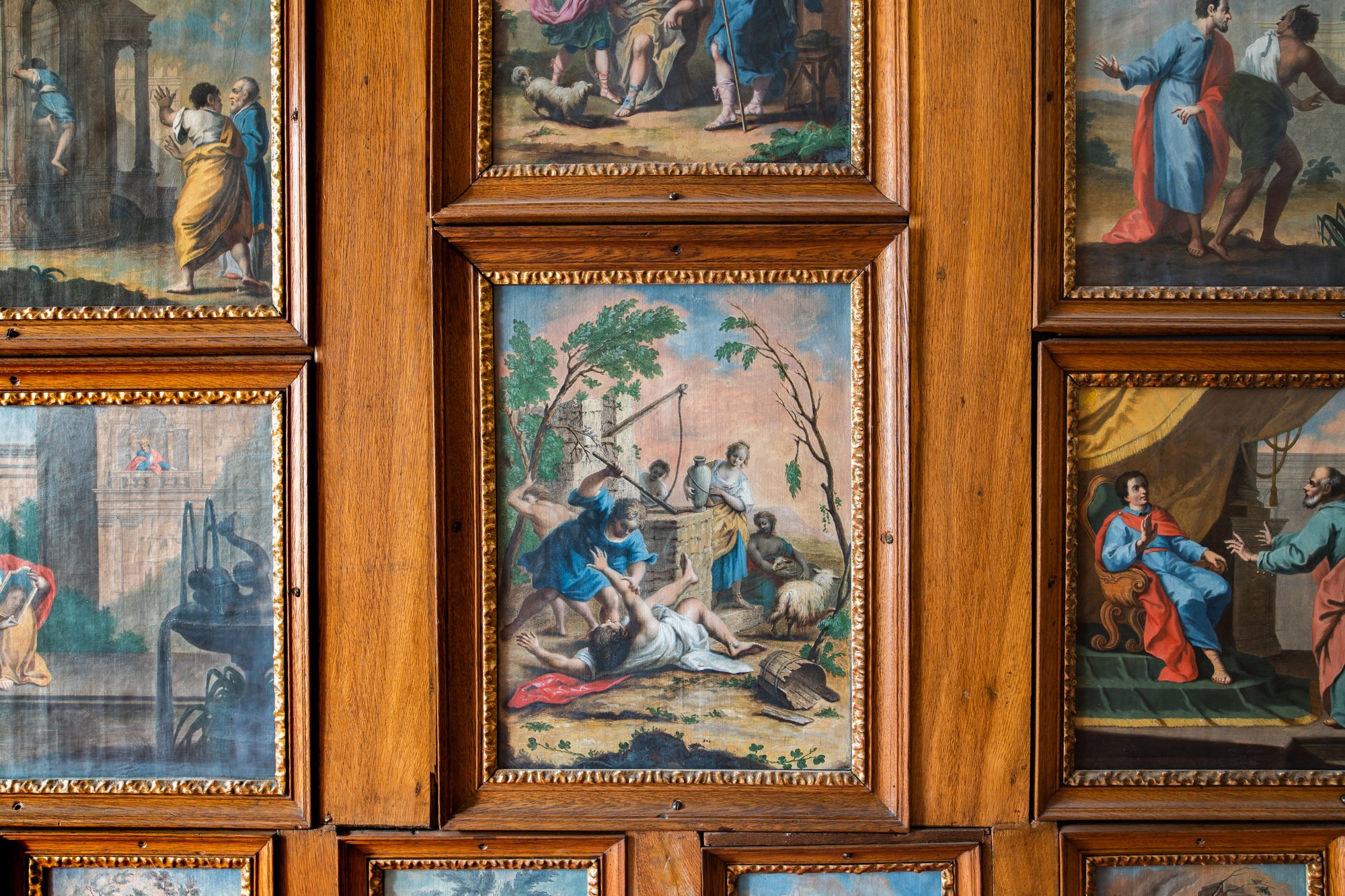 V biblickom kabinete sa nachádza 206 grafických listov rôznych veľkostí s výlučne sakrálnymi námetmi. V strednej časti troch stien sú umiestnené pozoruhodné diela talianskej proveniencie väčšieho formátu. Po krajoch a na východnej stene sú to zasa menšie grafiky holandského, nemeckého, francúzskeho a talianskeho pôvodu. Najrozsiahlejšia séria grafík je dielom holandských umelcov Caspara a Jana Luykenovcov a Francesca Antonia Meloniho. Spomenúť možno aj grafické listy vytvorené podľa predlôh Jacopa Amigoniho, Giuseppe Zocchiho, Giovanniho Battistu Pittoniho, Pietra Longhiho, Francesca Moarda alebo Sébastiena Le Clerca. Viaceré diela, napríklad podľa predlôh Franza Sigrista st., Gottfrieda Bernharda Göza, rytcov Jakoba Gottlieba Thelotta a pravdepodobne Georga Philippa II. Rugendasa, vydalo nemecké vydavateľstvo Johanna Georga Hertela. Od roku 1975 sú tieto diela po pamiatkovej rekonštrukcii Mirbachovho paláca prístupné návštevníkom ako súčasť stálych expozícií GMB.
