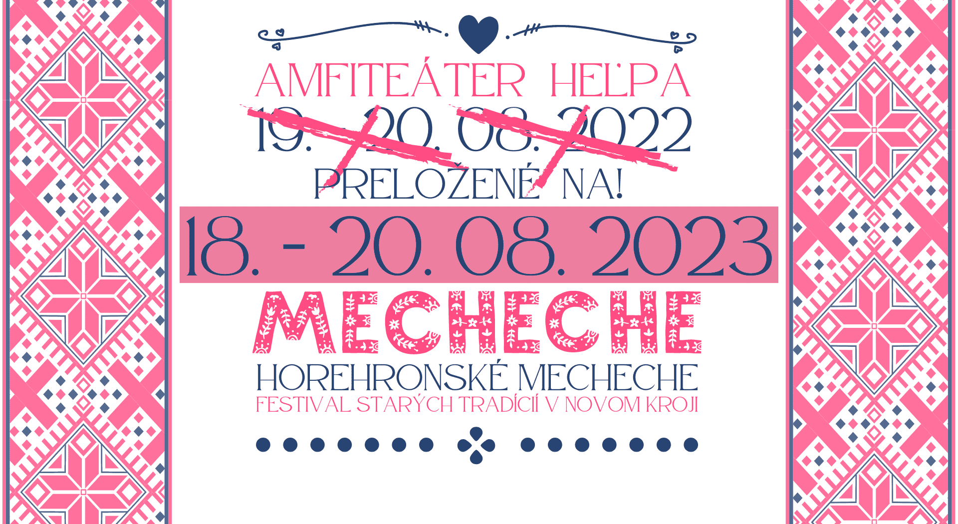 HOREHRONSKÉ MECHECHE 2022 sa posúva o rok a stáva sa z neho HOREHRONSKÉ MECHECHE 2023. Bude sa konať v dňoch 18 až 20. augusta 2023.
