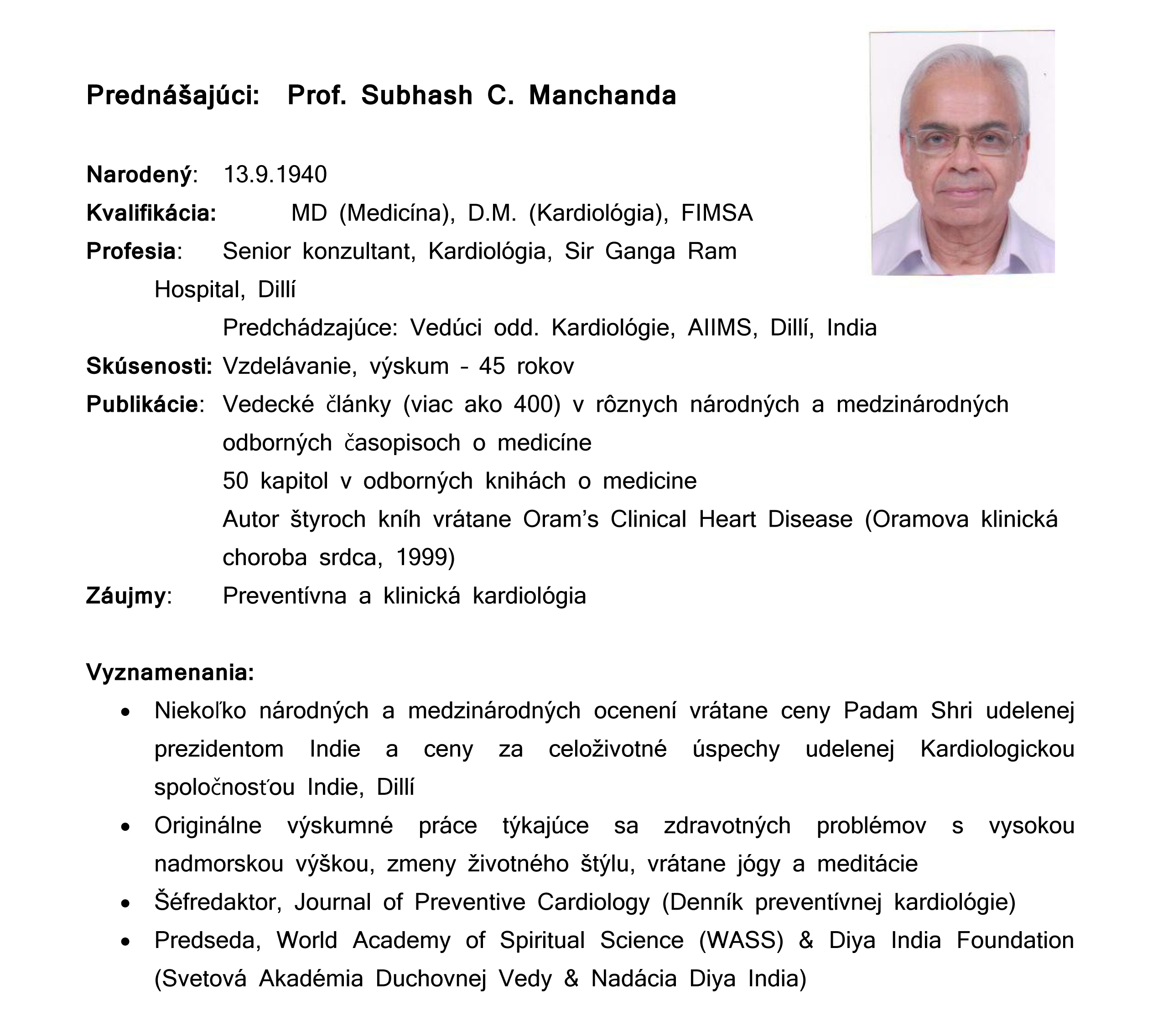 PREDNÁŠAJÚCI: DR. S. MANCHANDA, Senior Cardio Consultant, Sir Ganga Ram Hospital, Dillí, India