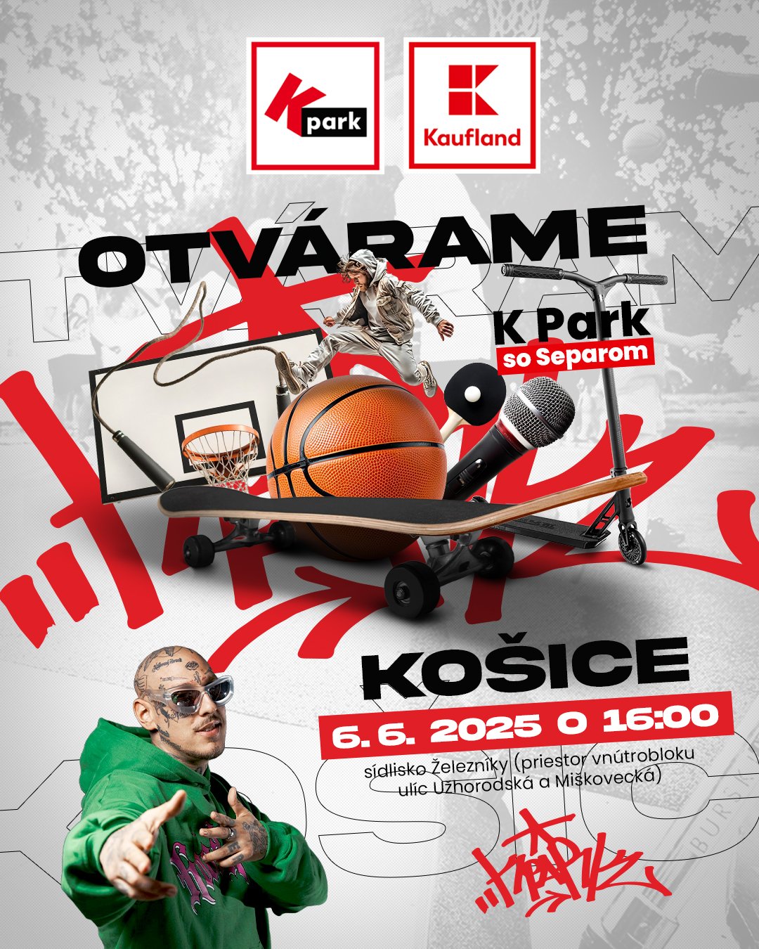 Čo robíte tento piatok? Kaufland si pre všetkých mladých i starších pripravil dodatočný darček ku Dňu detí, spolu s tanečníkmi, športovcami a Separom otvorí svoj dvadsiaty tretí K Park na Slovensku. Už 6. júna o 16:00 hod. sa mestská časť Košice – Juh premení na miesto plné hudby, tanca, zábavy a športu, nenechajte si to ujsť! Vstup na podujatie je vďaka obľúbenému reťazcu pre všetkých úplne zadarmo.