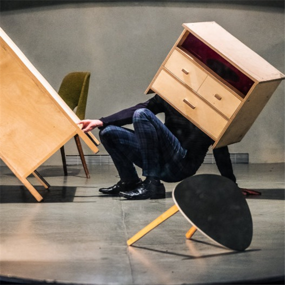 Obývací pokoj je expedíciou ľudskej predstavivosti do neprebádaného teritória nábytku. Odohráva sa medzi stenami jednej miestnosti, vo svete, ktorý existuje paralelne vedľa nášho. Každý predmet v ňom má vlastný charakter. Na pomedzí svetla a tmy, uprostred tichého škrípania drevených nôh a vŕzgania dverí, nábytok a ľudské telo sa stávajú plátnom, z ktorého sa vynárajú a zase strácajú fantastické figúry.
