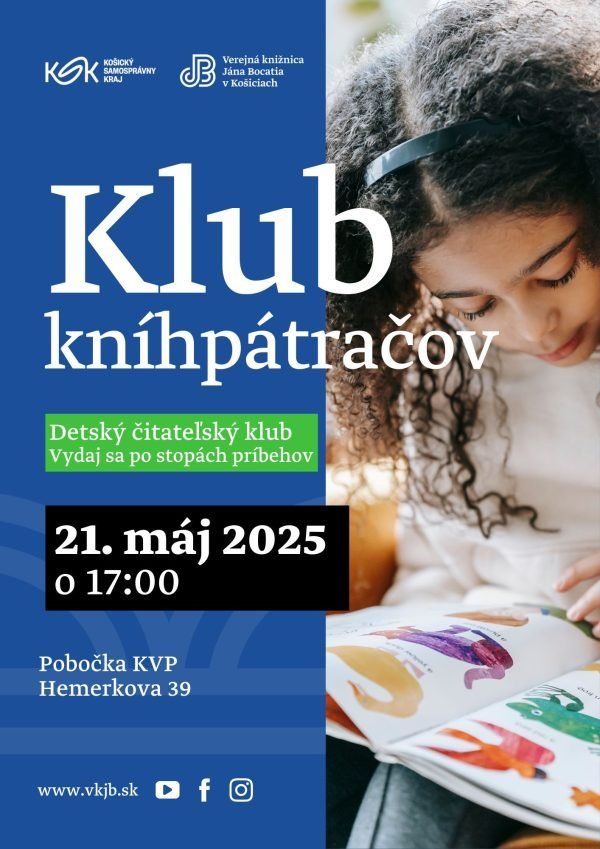 Príďte zažiť klubové stretnutia detí, počas ktorých majú malé čitateľky a malí čitatelia príležitosť byť členmi tajného klubu kníhpátračov, schovať sa medzi knižničné poličky, vymieňať si postrehy s inými knižnými detektívmi a zisťovať, čo všetko knihy skrývajú, a to pravidelne každú tretiu stredu v mesiaci.